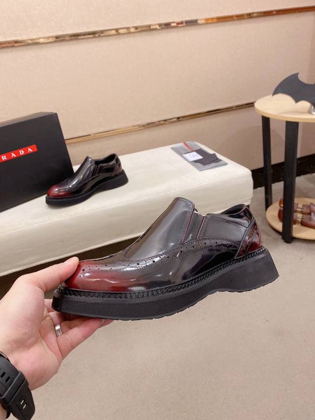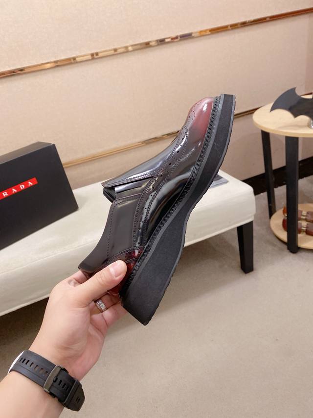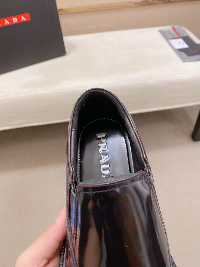 Factory direct price, high-quality new Prada shoes, simultaneously launched in Prada boutiques. New men's shoes, made with selected imported patent leather top-grain cowhide and imported cowhide lining. High-end air-cushioned molded non-slip rubber outsole, exquisite lines, simple and stylish, comfortable and high-end, suitable for casual wear and travel. Sizes: 38-44. Custom sizes 45 available.