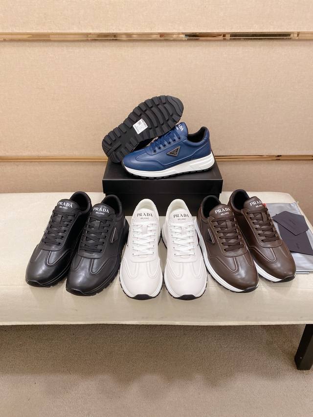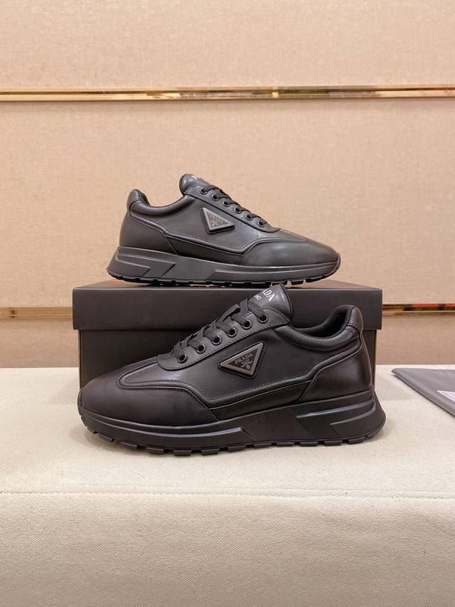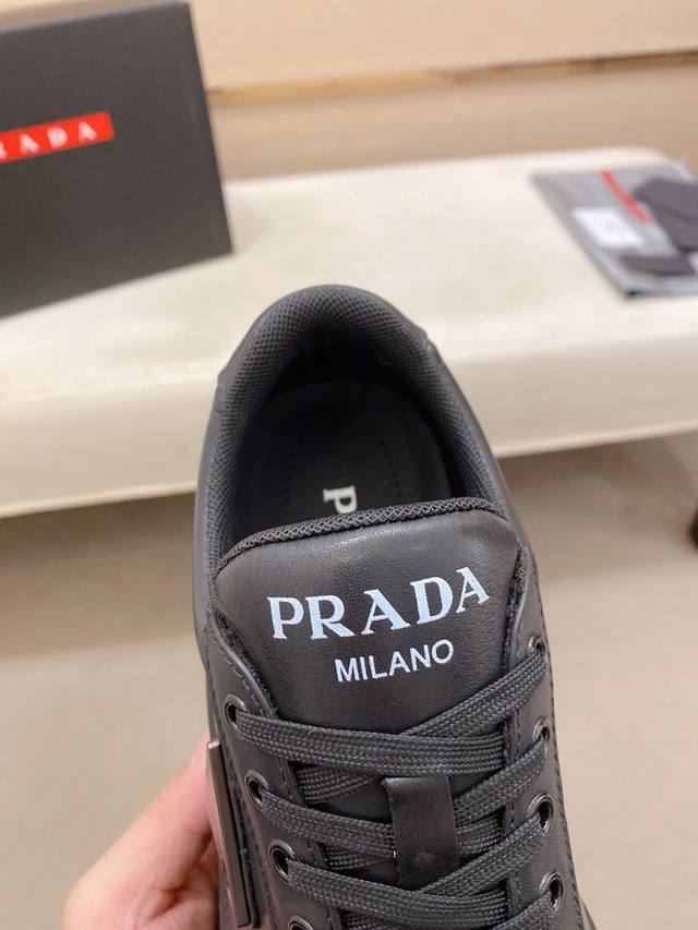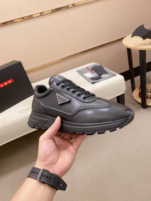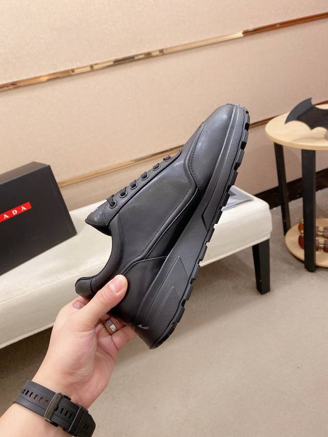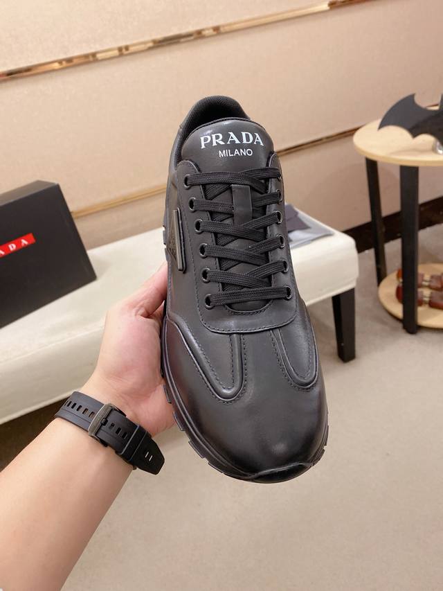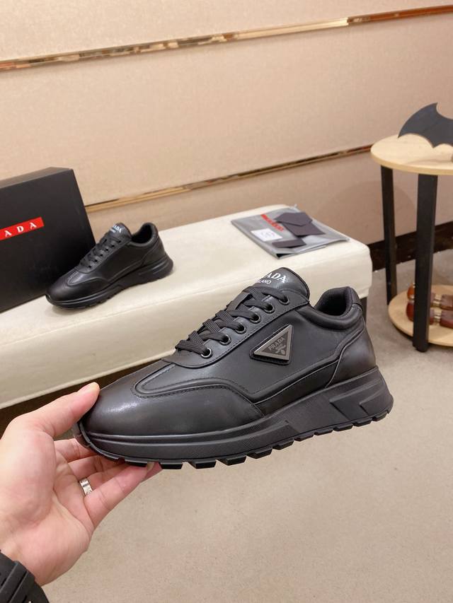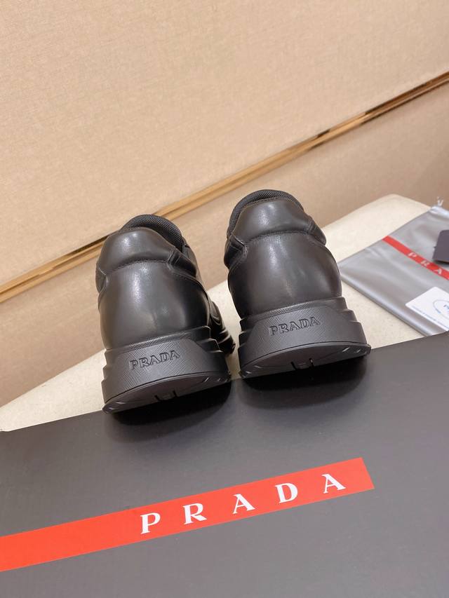 Factory direct price, high-quality new Prada shoes, simultaneously launched in Prada boutiques. New men's shoes, made with selected top-grain cowhide leather, purely handcrafted. Lining: Full cowhide lining. High-end air-cushioned molded non-slip rubber outsole. Exquisite lines, simple and stylish, comfortable and high-end, suitable for casual travel. Sizes: 38-45.