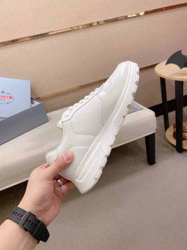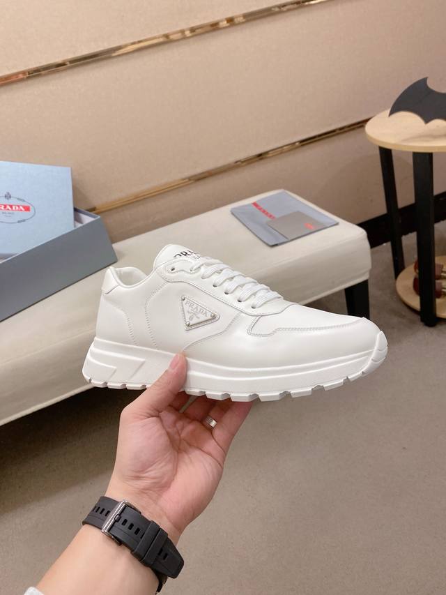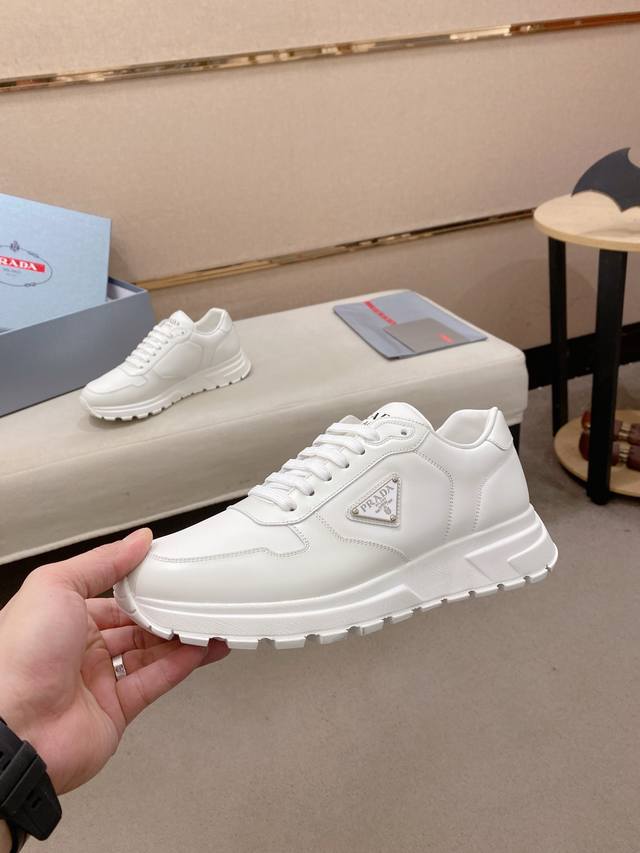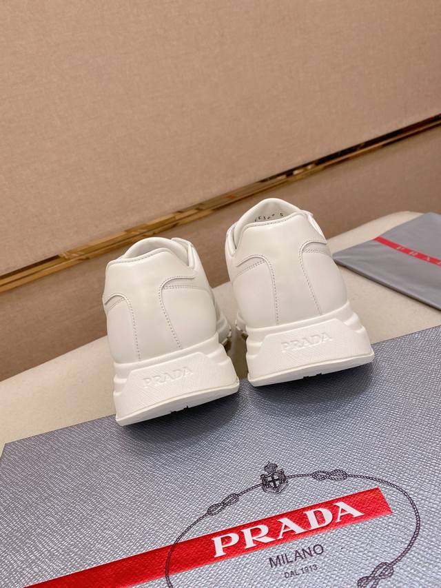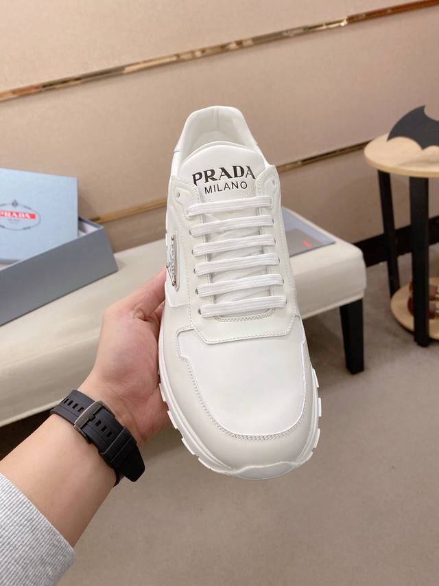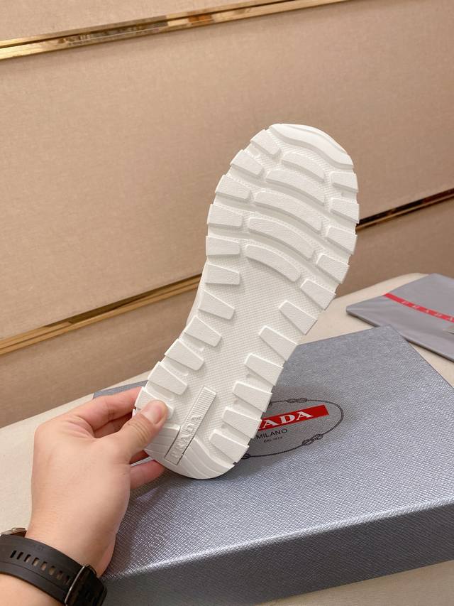 Factory direct price. High-quality Prada men's shoes with official box. Popular style, same as official website, high-quality delivery. Material: Original split-edge beaded leather with top-grain cowhide. Lining: Cowhide insole + cowhide lining. Outsole: Original TPU. Sizes: 38-44. 45 and 46 are custom-made.