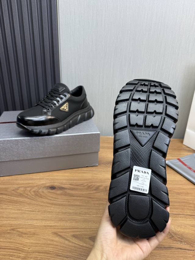 Factory direct price men's clothing, shoes, sportswear, original single item, Prada popular men's shoes, shipped simultaneously with official website, original cowhide upper and lining, 1:1 replica, original factory sole, sizes 38-45. Custom orders are non-refundable and non-exchangeable.