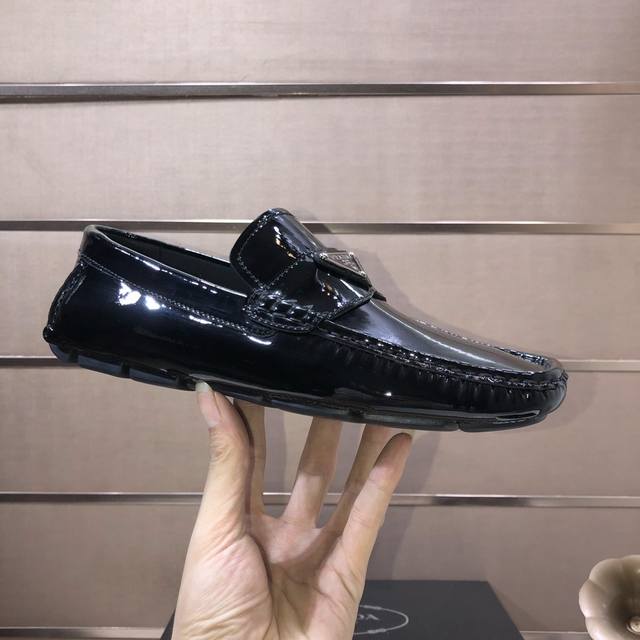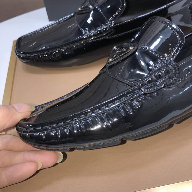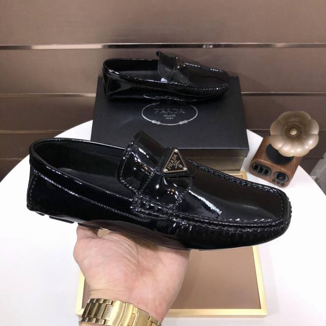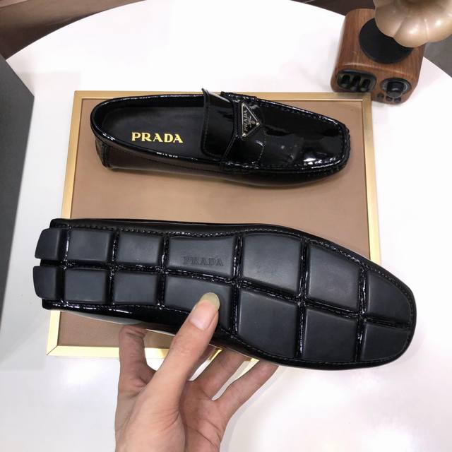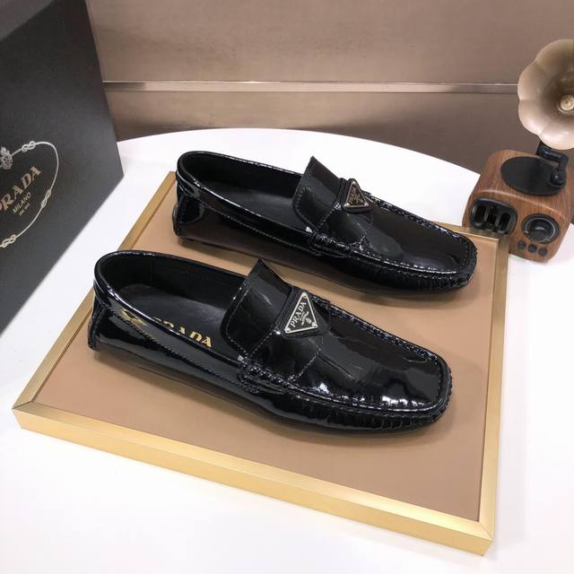Factory direct price men's sports shoes, original Prada driving shoes, new arrival, Prada water-dyed cowhide lining, available on the official website. These new driving shoes feature a unique color processing process and an imported cowhide upper. The shoe body is edged with stitching, and the lining is made of imported original cowhide. The elegant shoe shape is super versatile and easy to match with any outfit. Sizes 38-44. (