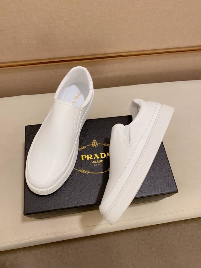 Factory direct price men's sports shoes, original Prada official website latest style casual fashion men's shoes, popular style with simple and stylish design, exclusive for trendy men. Unique official website latest brand elements and original decorations, fashionable and generous, original cowhide and sheepskin lining, official website specified wear-resistant casual outsole, classic style from the store, actual product photos, size 38-44