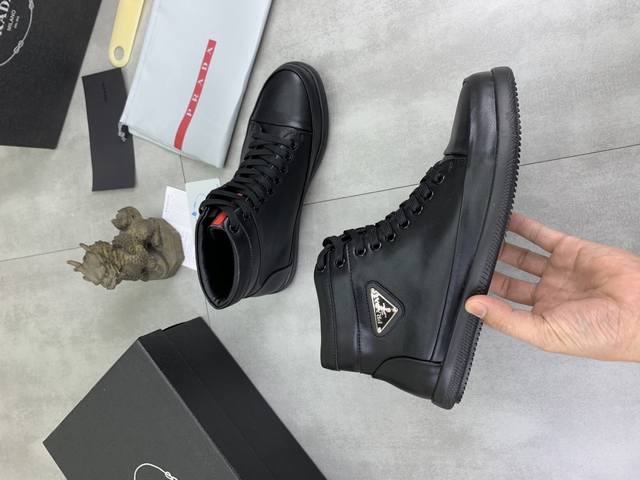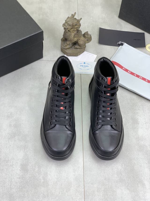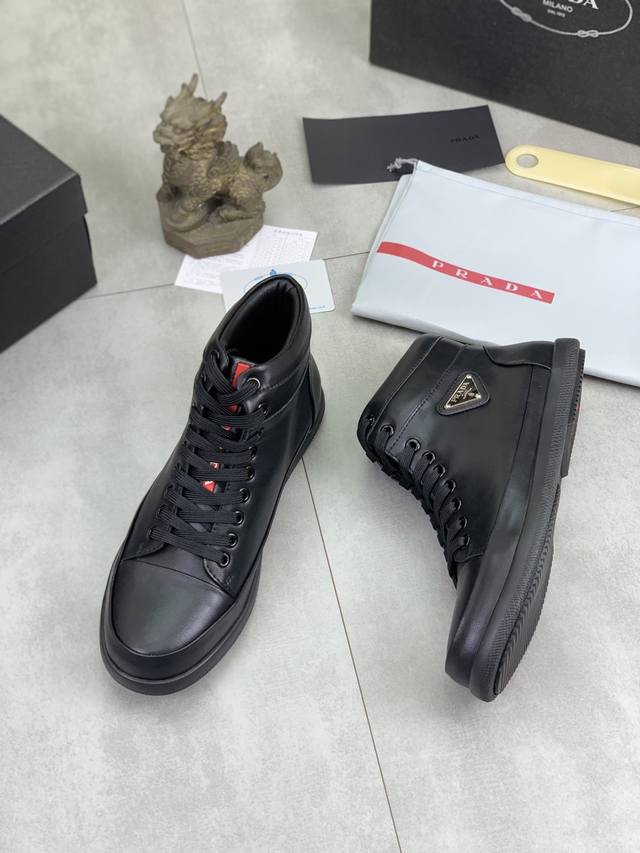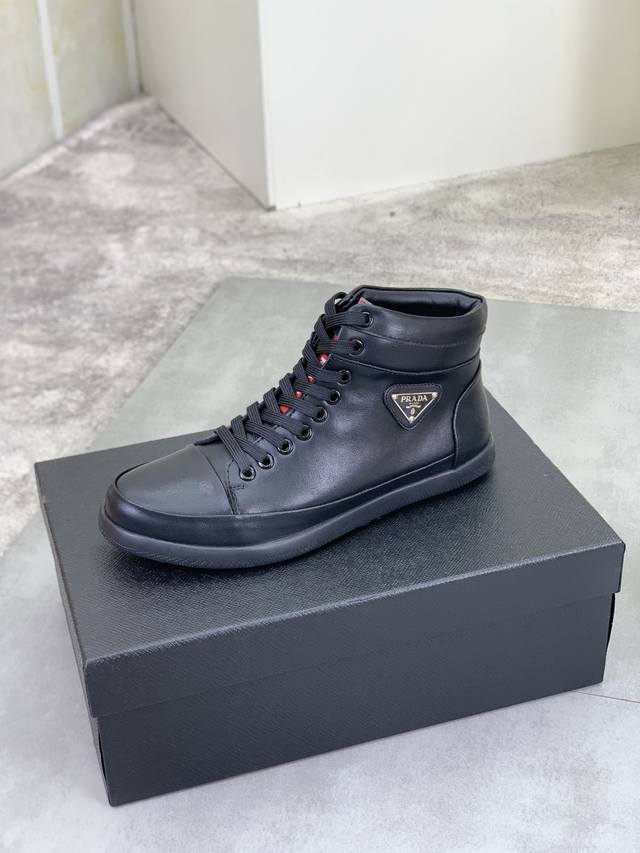 Factory direct price, new Prada high-top shoes, classic style now available. New men's shoes, made with premium imported calfskin leather, top-grain imported pigskin lining, original cowhide insole, original molded non-slip PU outsole. Exquisite lines, simple and stylish design, super comfortable and high-end feel, perfect for casual wear and travel. Sizes: 38-44. 3 colors available.