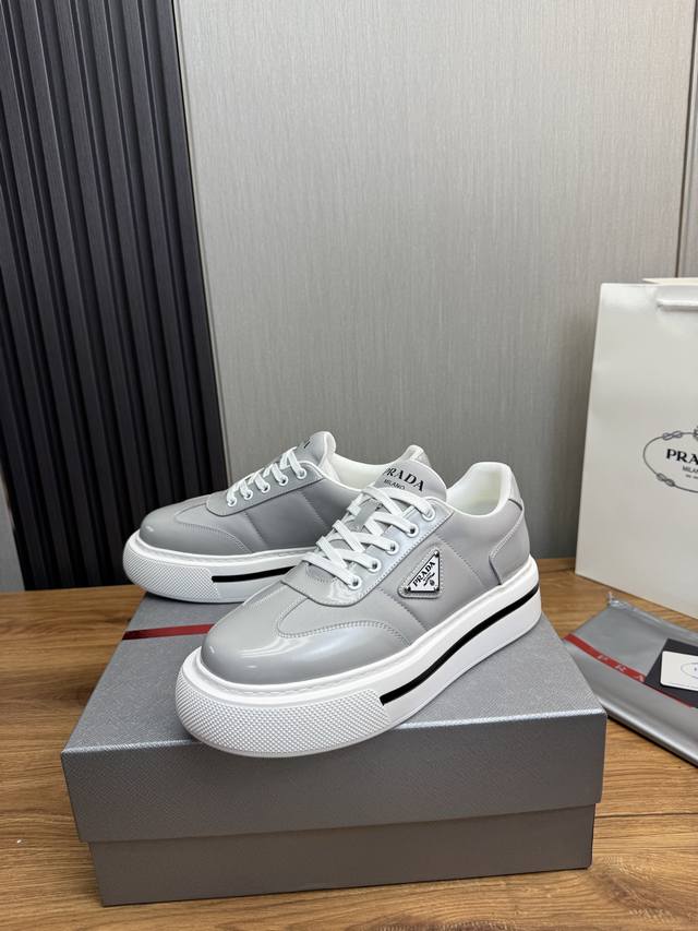 Factory direct price Prad* Prad men's shoes, 1:1 replica of official website, imported suede leather upper, leather lining, original factory-supplied sole, sizes 38-45, sizes 45 are custom-made and non-refundable.