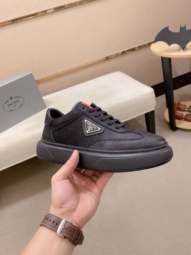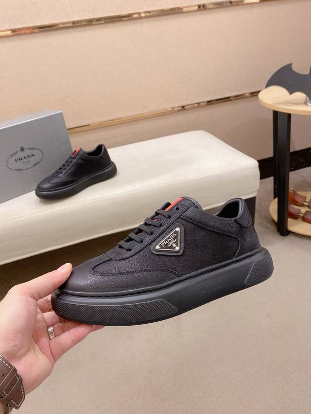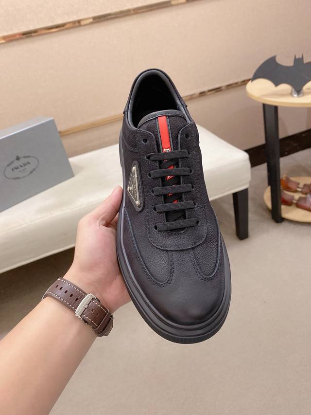 Factory direct price Prada official website latest casual and fashionable men's shoes, popular style, simple and stylish design, exclusive for trendy men. Unique official website latest brand elements and original decorations, fashionable and generous, original top layer cowhide and sheepskin lining, official website specified wear-resistant casual outsole, classic style from the store, real product photos, sizes 38-44, 45, custom-made, no returns or exchanges.