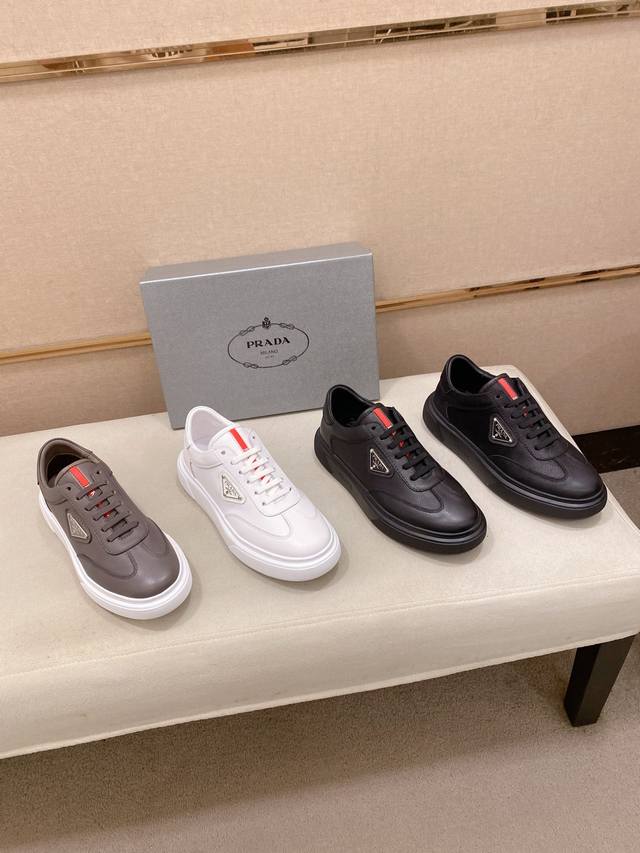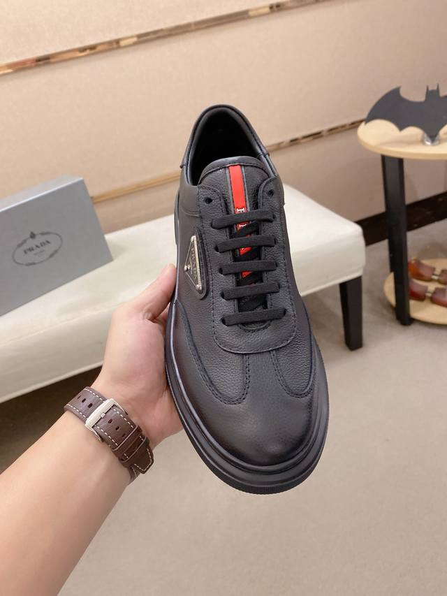 Factory direct price Prada official website latest casual and fashionable men's shoes, popular style, simple and stylish design, exclusive for trendy men. Unique official website latest brand elements and original decorations, fashionable and generous, original top layer cowhide and sheepskin lining, official website specified wear-resistant casual outsole, classic style from the store, real product photos, sizes 38-44, 45, custom-made, no returns or exchanges.