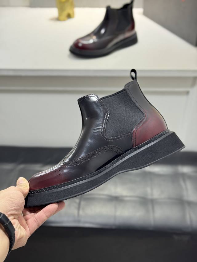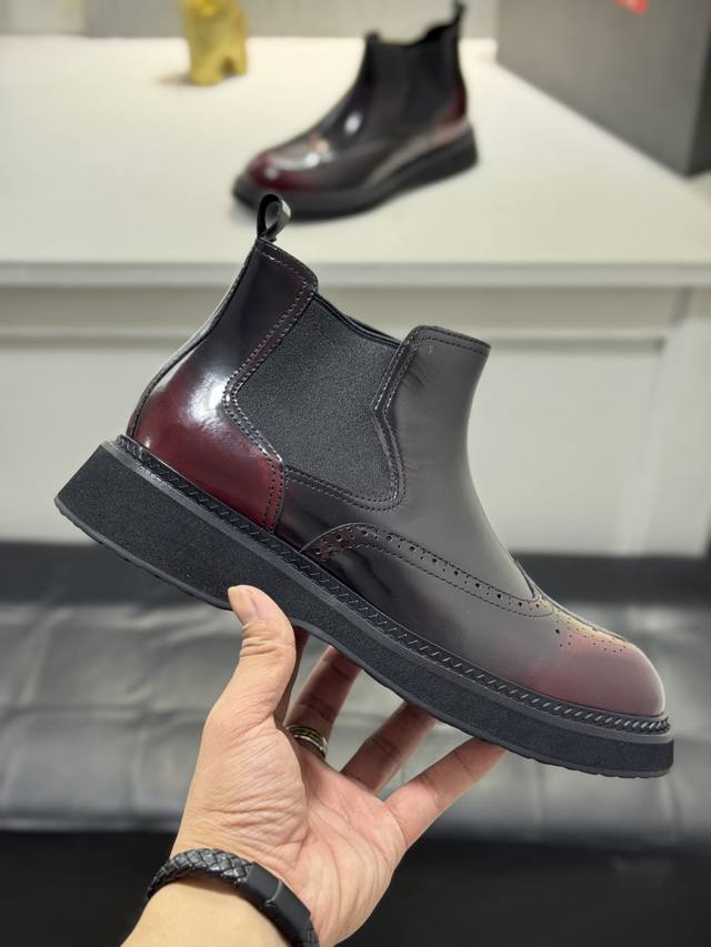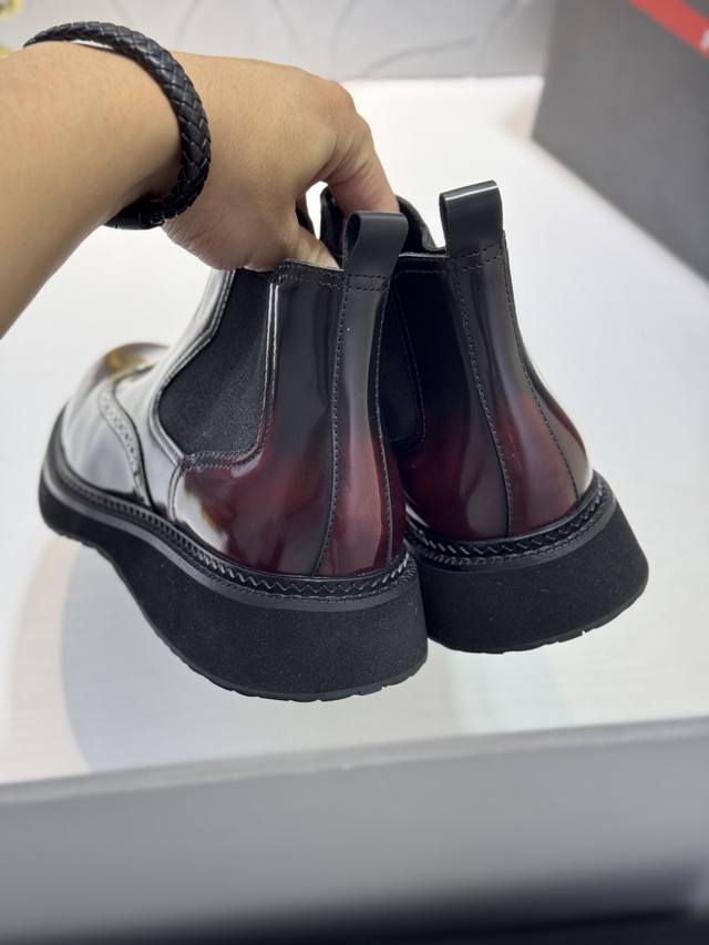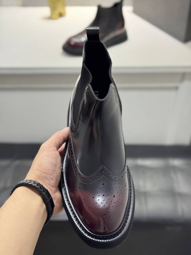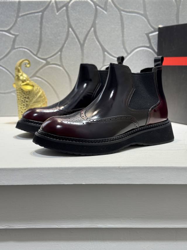 Factory direct price Prada platform men's shoes, original quality, perfect replica, brogue style men's formal and casual leather shoes, luxurious materials, imported cowhide, with water-dyed cowhide lining, 4.5cm lightweight PU foam outsole, perfectly replicating the original classic, purchased from the original 1:1 accurate replica, welcome to compare, modern design, versatile and stylish urban man! Note: Shoes have fur lining or leather lining, please specify Ddd when ordering. Size: 38-44, 45 custom-made DDD