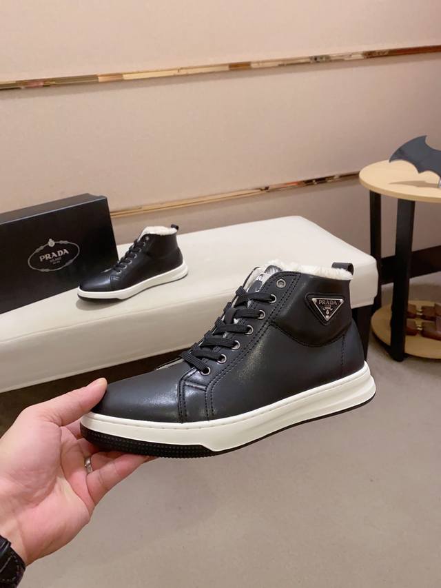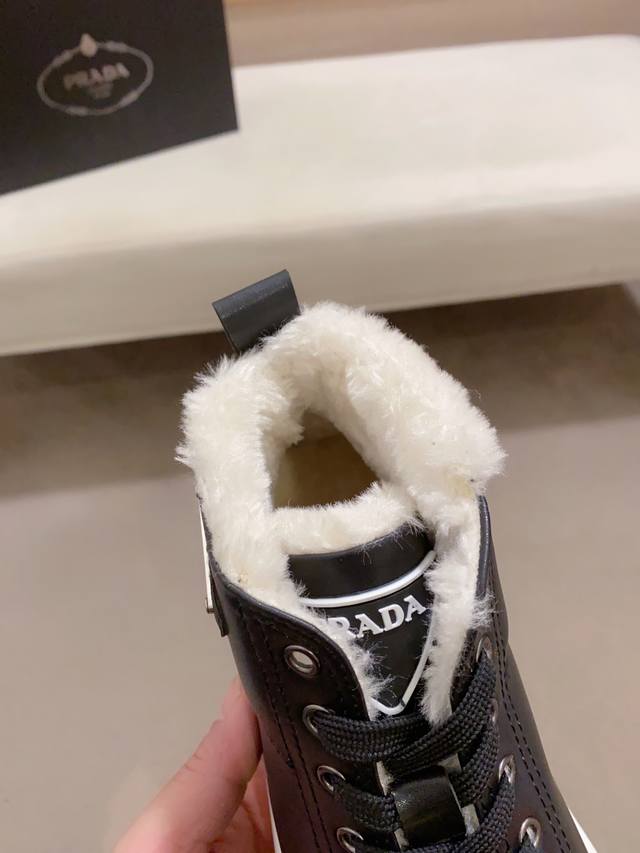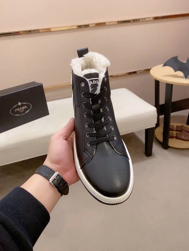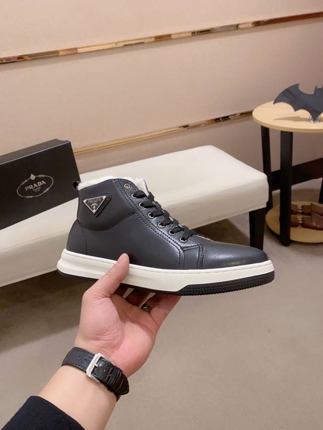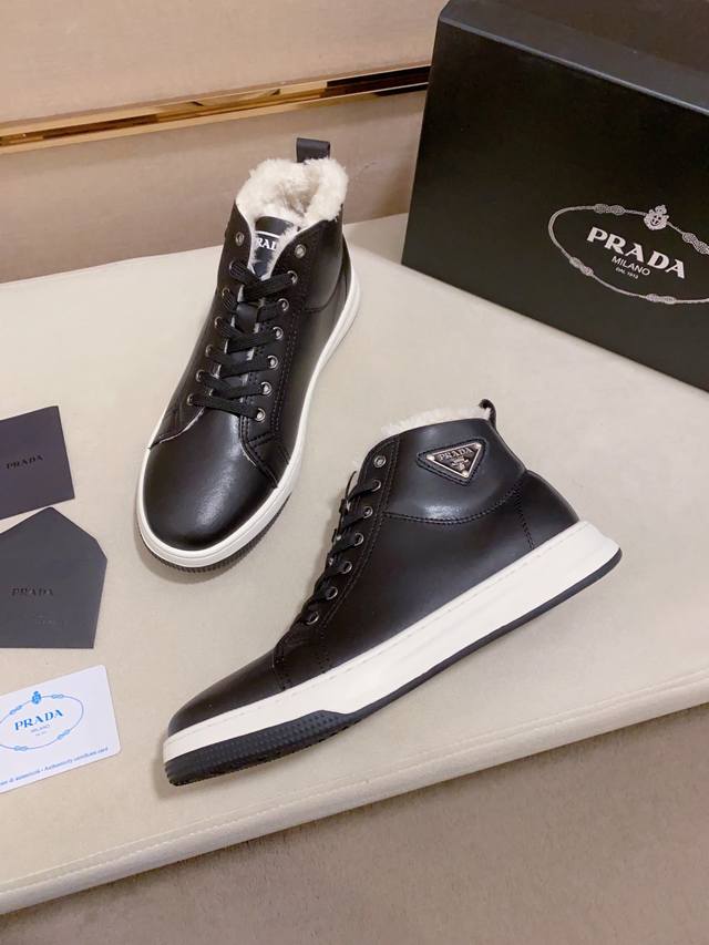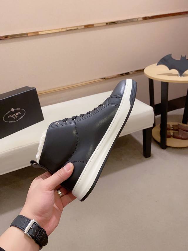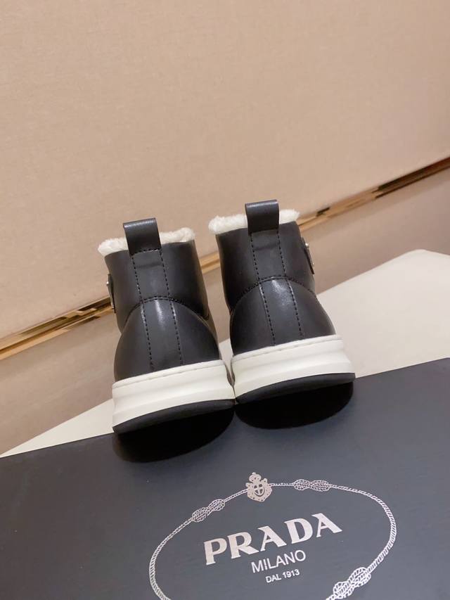 Factory direct price Prada ~ Prada trendy high-top new arrival, same style as official website, boutique quality, original version, made with selected top-grain calfskin leather. Comfortable and breathable fleece lining, exquisite workmanship, 100% pure cowhide upper layer, original last, comfortable fit, sizes 38 to 44.