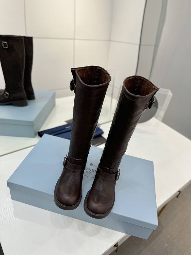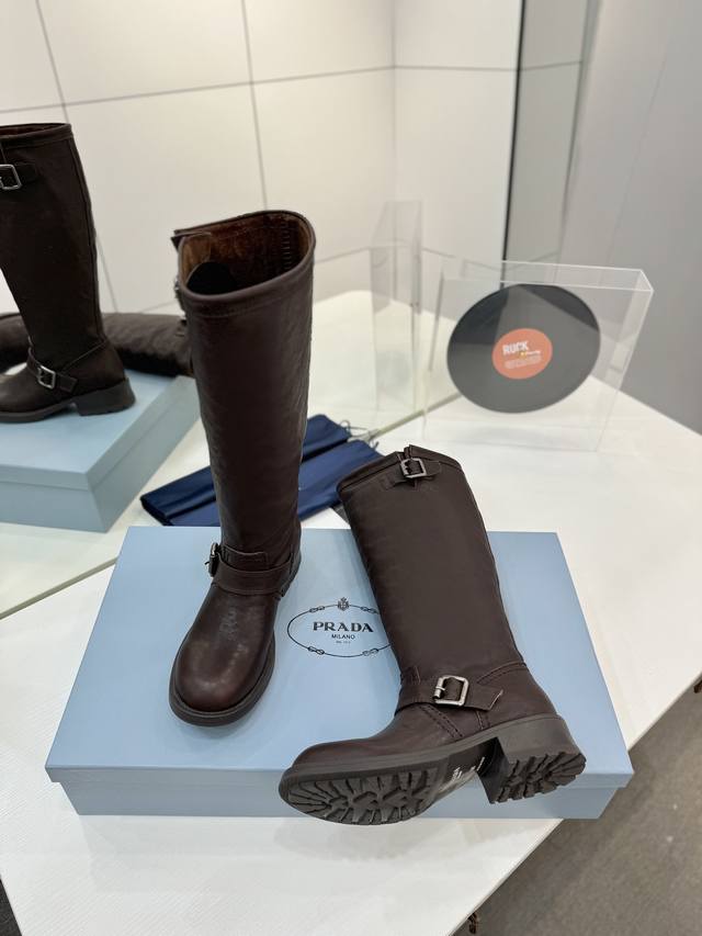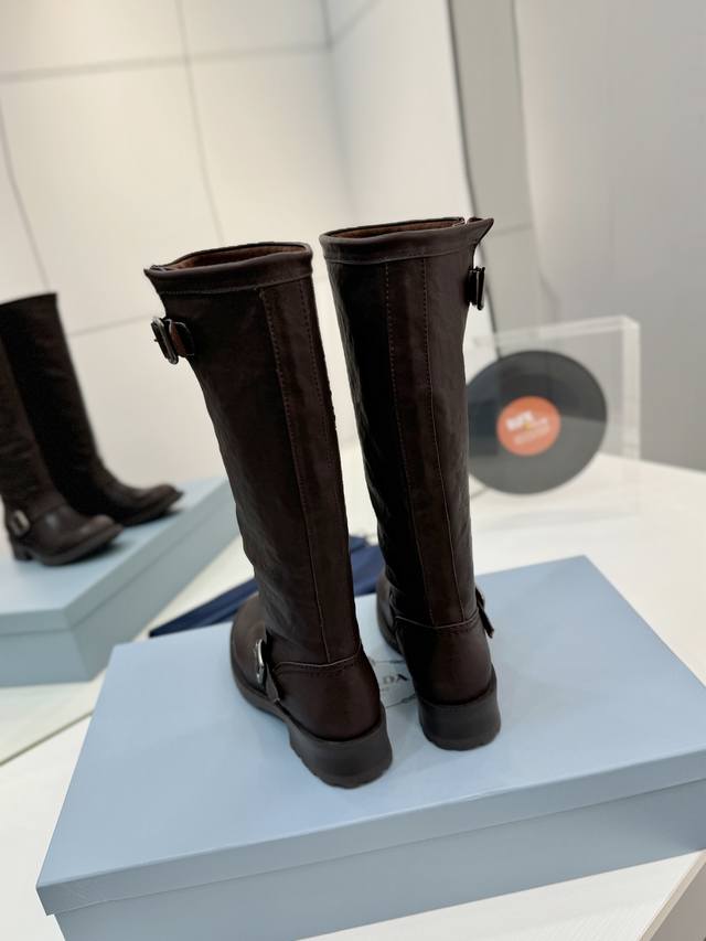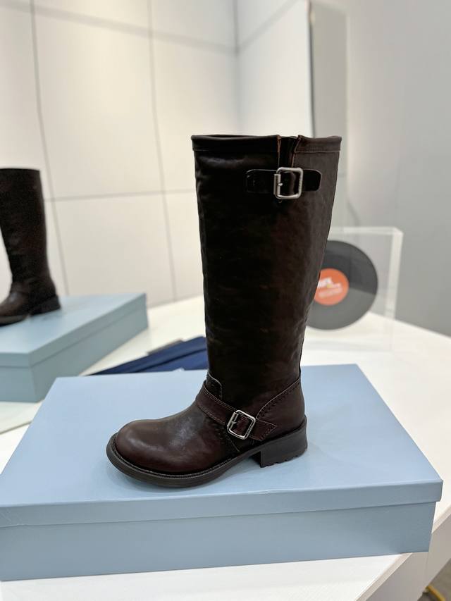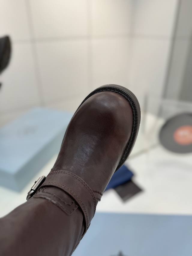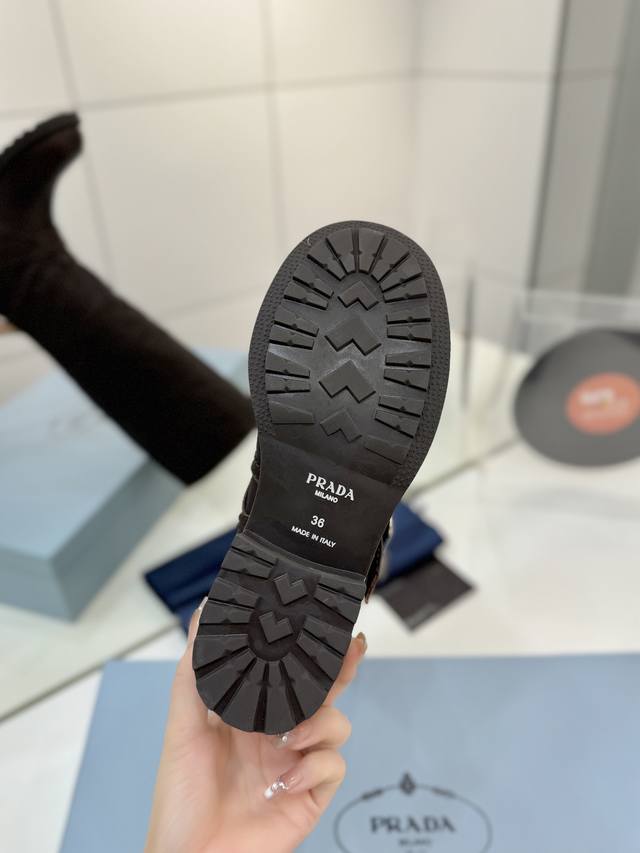 Factory direct price Prada Western cowboy boots, ankle boots, Martin boots. Made of high-quality calfskin, soft and comfortable, they make your legs look super long! The thick sole design is stable, with a non-slip rubber outsole for comfort and durability! They go well with both trousers and skirts, becoming a versatile wardrobe staple. Material: Imported calfskin. Lining: Soft and delicate translucent dyed sheepskin. Outsole: Non-slip rubber sole. Sizes: 35-40. Size 40 is custom-made and non-refundable.