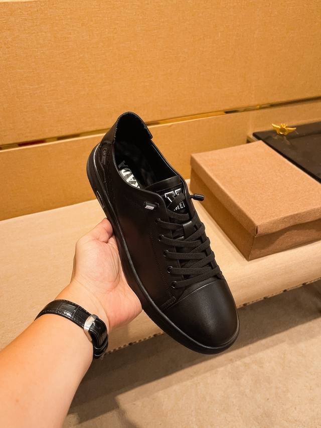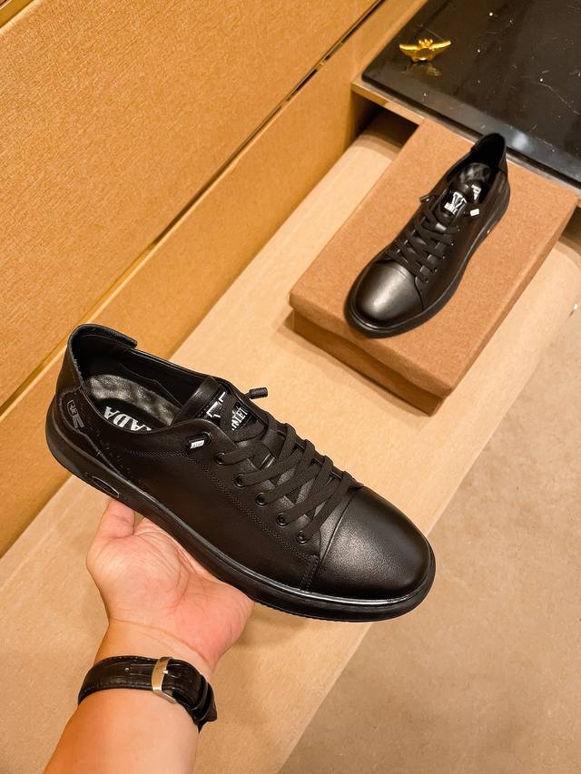 Factory p-batch Prada men's shoes, a 1:1 replica of the high-end brand's official website, featuring the latest masterpiece: the upper is made of imported Italian top-grain cowhide, with a comfortable and breathable lining and an original non-slip and wear-resistant outsole, making walking more convenient and comfortable! Exclusive new models, stunning works, and a 1:1 replica of the original quality! Create a stylish and personalized look that sets you apart! A must-have for trendy men, sizes 38-44. Colors: 2 colors available.