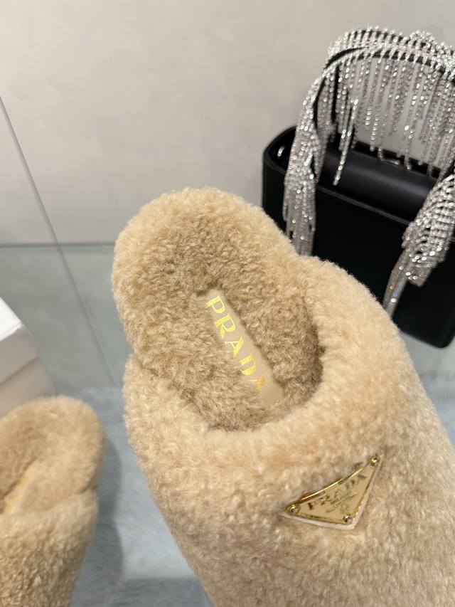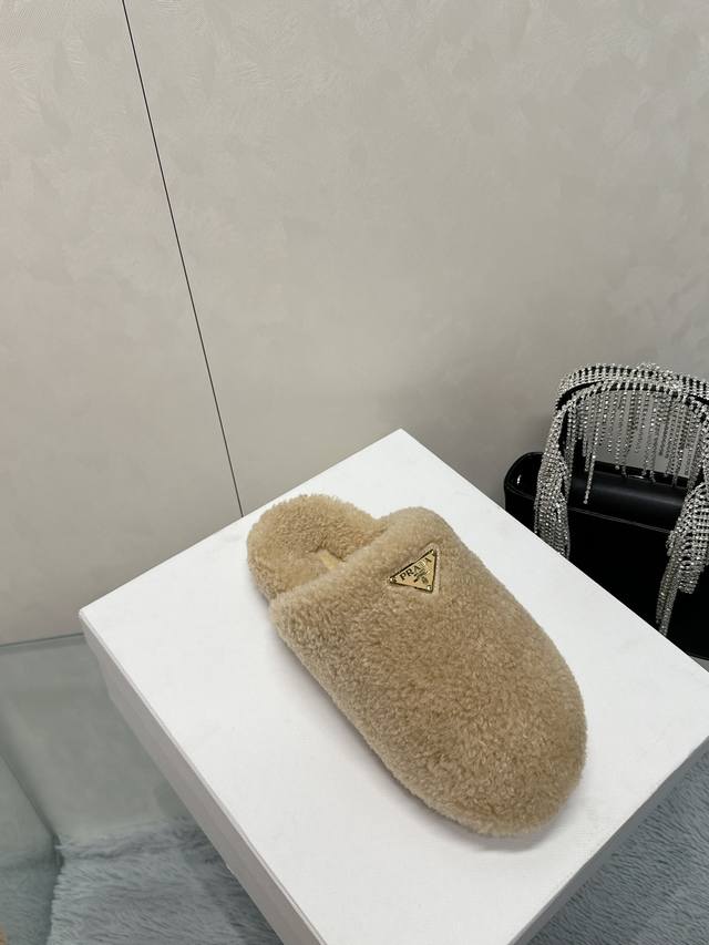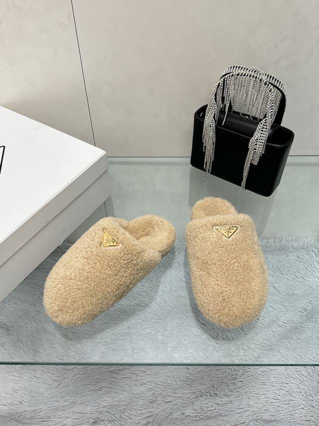 Latest Series! Prada's new autumn and winter wool slippers, triangle buckle, bread-toe half slippers, woven wool series, the latest catwalk series, classic upgrade, comfortable and fashionable coexist. Every color combination looks good, designed to match different style needs