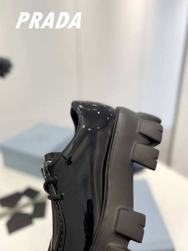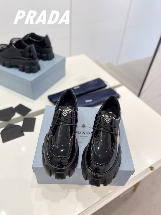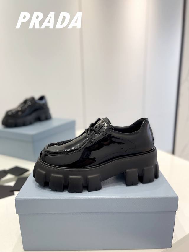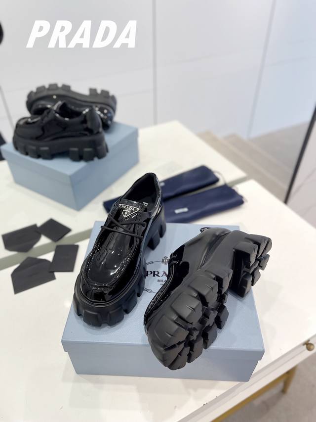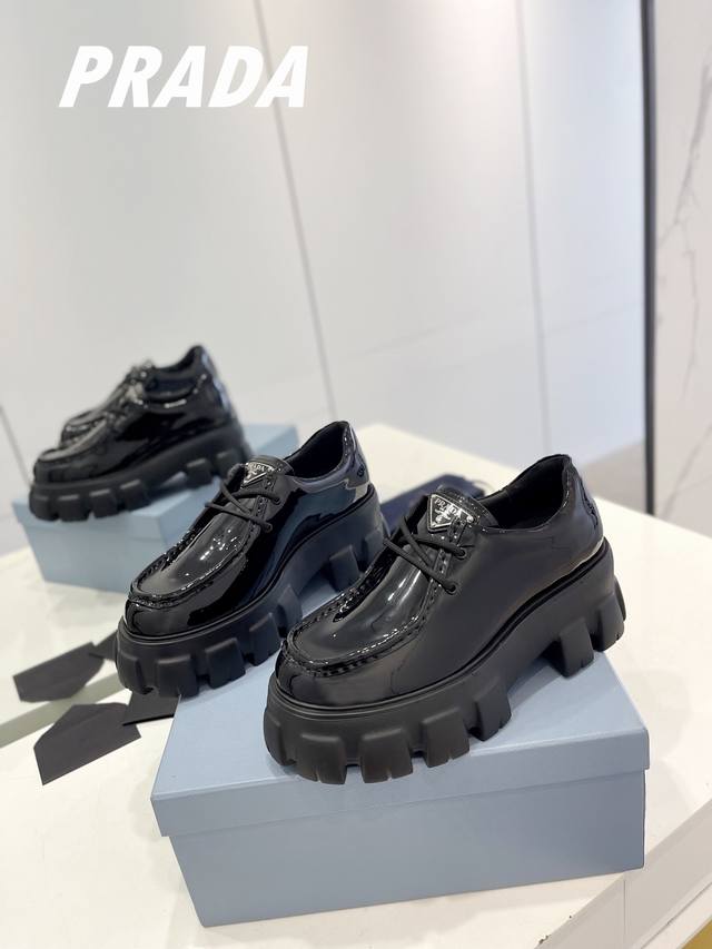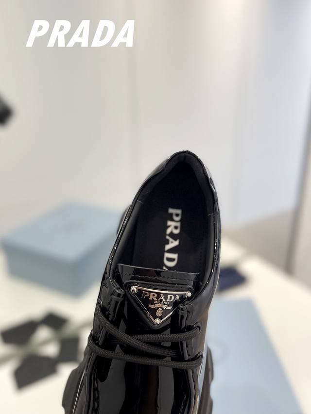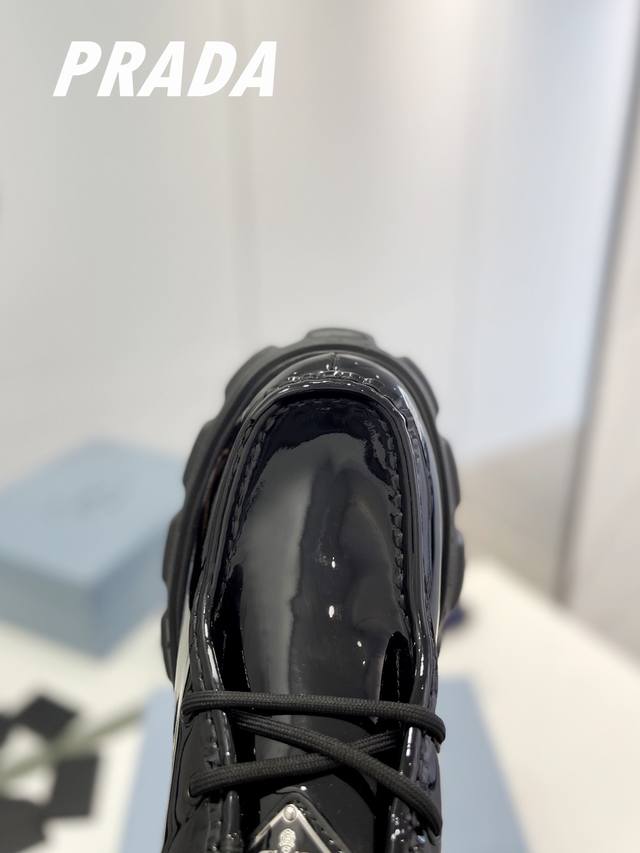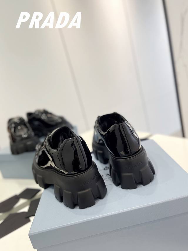 Classic wheel-style platform sole + classic loafer upper. This Prada platform casual shoe is a foolproof choice, 1:1 replica.