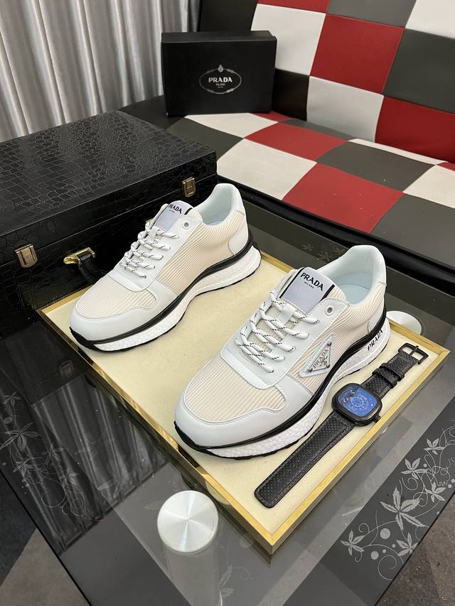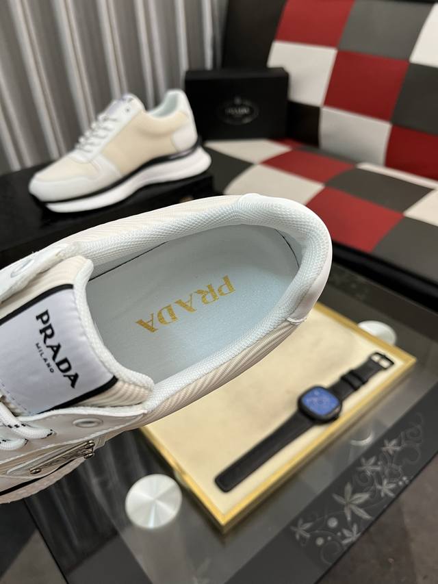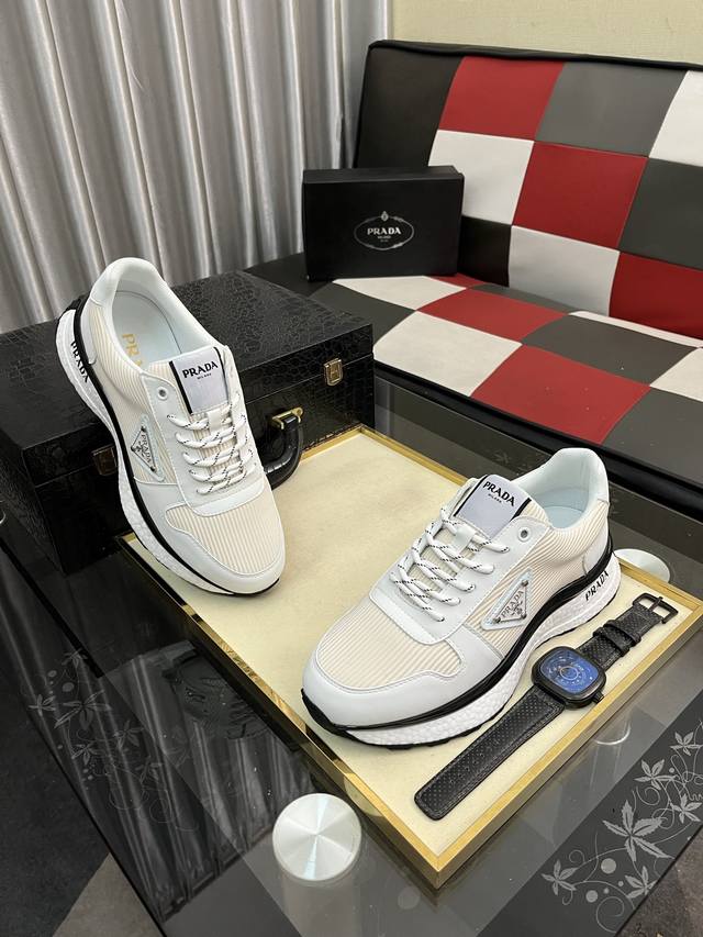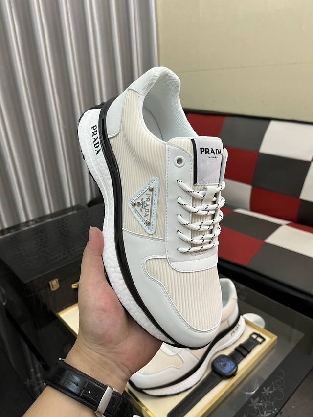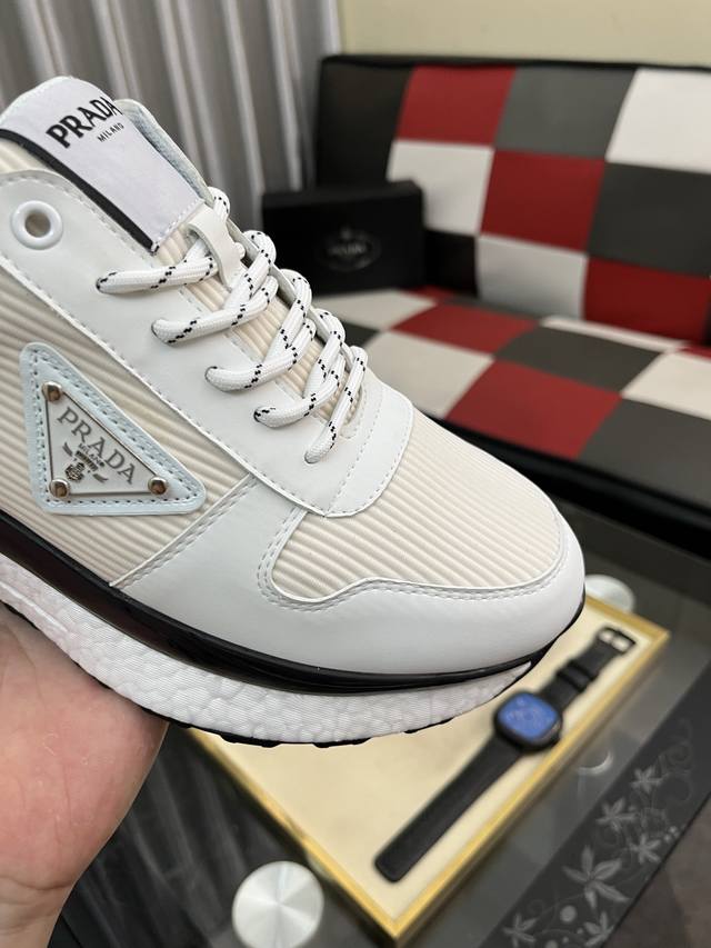 Factory Price Men's Sports Shoes Original Prada New Men's Casual Shoes. These sneakers feature an imported calfskin upper with breathable mesh and a breathable mesh lining. The sole features a non-slip, sport-inspired rubber outsole with logo. They feel great on the feet and are a stylish and fashionable item! Sizes: 38-44, available in four colors (
