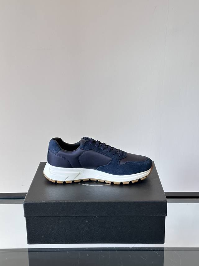 Factory Price Men's Sports Shoes Original Prada* Prada Spring/Summer New Arrivals High-End Men's Sneakers. Stylish and versatile, these shoes are simple and modern, blending sporty style with refined details. Crafted from imported cowhide and technical fabric, they feature a rubber sole and an embossed monogram logo on the tongue, creating a simple and stylish piece. Sizes: 38-44