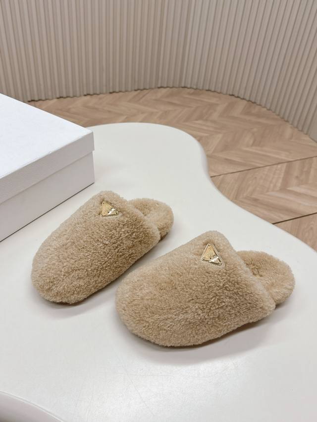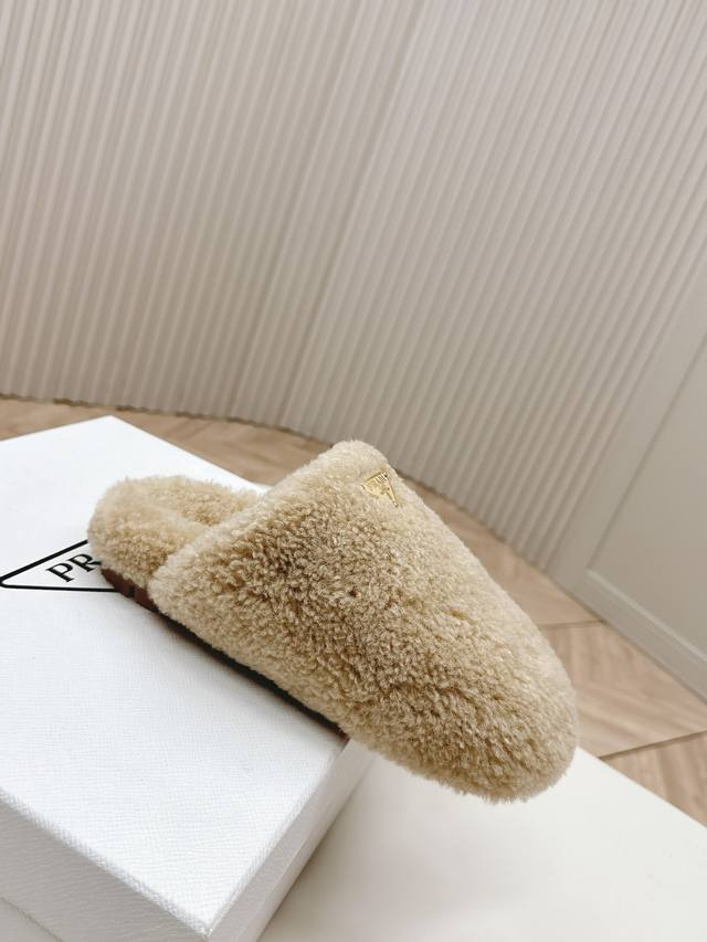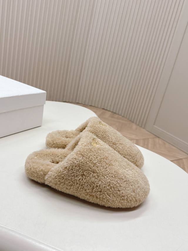 Factory Price p DDD Prada Autumn/Winter Fleece Slippers Series Half-Slipper Wool Slippers, Comfortable, Cute, Stylish, Elegant, and Versatile. The wool is soft and comfortable, bringing warmth to autumn and winter. Enjoy comfortable walks from morning till night. Pair with socks for easy season transitions. Wool, original sole! Sizes 35-40 DDD