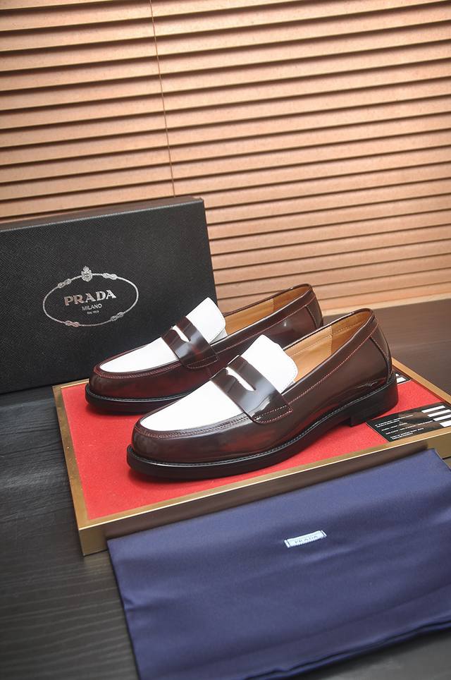 Factory Price P. Prada's latest genuine leather business suit shoes with full high-end cowhide lining, launched simultaneously on the official website. Made with 1:1 replica of imported Italian top-grain cowhide, featuring a 1:1 rubber outsole. Versatile and stylish, high-end yet sophisticated, with a unique color combination. This all-season style will make you radiate charm and exude a high-end aura. Standard sizes 38-45, size 45 custom-made
