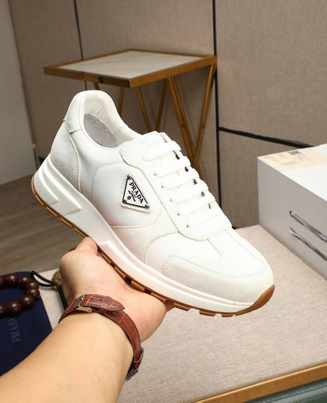 Factory price p Top quality, official website new hot-selling models, timeless, trendy Prada brand main push, avant-garde and versatile men's fashion shoes privately molded, cowhide upper with 1:1 oiled edge treatment... Stylish and crisp, original imported cowhide lining and cowhide footbed; stylish personality, trendy, eye-catching, and high-end, it will subvert old ideas and share with you a fashion trendsetter's essential high-end comfortable lows, high-quality workmanship. Sizes: 38-44, multiple colors available. Complete packaging