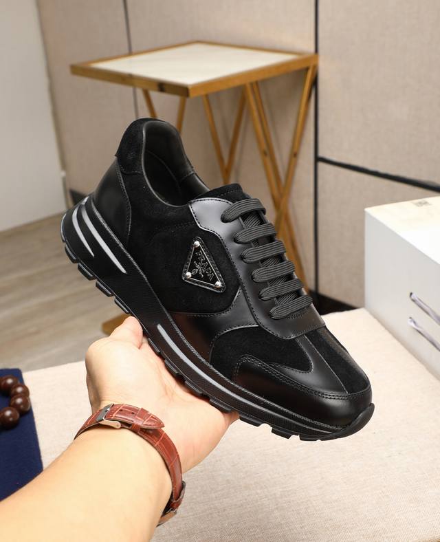 Factory price p Top quality, official website new hot-selling models, timeless, trendy Prada brand main push, avant-garde and versatile men's fashion shoes privately molded, cowhide upper with 1:1 oiled edge treatment... Stylish and crisp, original imported cowhide lining and cowhide footbed; stylish personality, trendy, eye-catching, and high-end, it will subvert old ideas and share with you a fashion trendsetter's essential high-end comfortable lows with high-quality workmanship. Sizes: 38-44, multiple colors available. Complete packaging