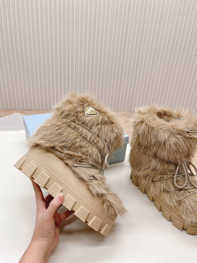 Factory Price (pp): DDD Latest Prada Snow Boots DDD Enameled Triangular Metal Logo DDD Boot Shaft: 14cm DDD Thick Sole, 50mm DDD Embossed 1:1 Original Outsole DDD Notched Edge DDD Colors: 4 DDD Sizes: 35-42 41.42 Custom Made DDD