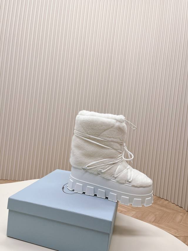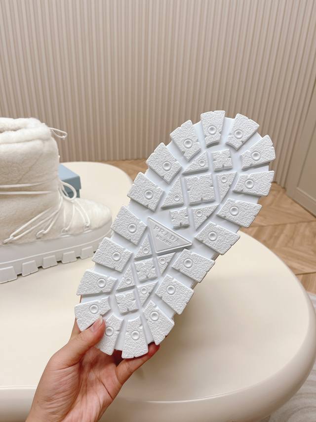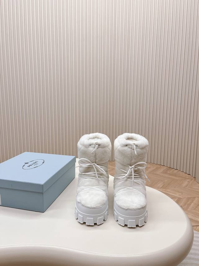 Factory Price (pp): DDD Latest Prada Snow Boots DDD Enameled Triangular Metal Logo DDD Boot Shaft: 14cm DDD Thick Sole, 50mm DDD Embossed 1:1 Original Outsole DDD Notched Edge DDD Colors: 4 DDD Sizes: 35-42 41.42 Custom Made DDD