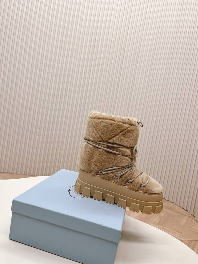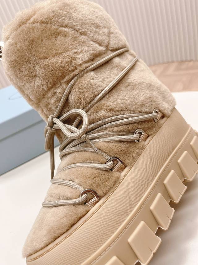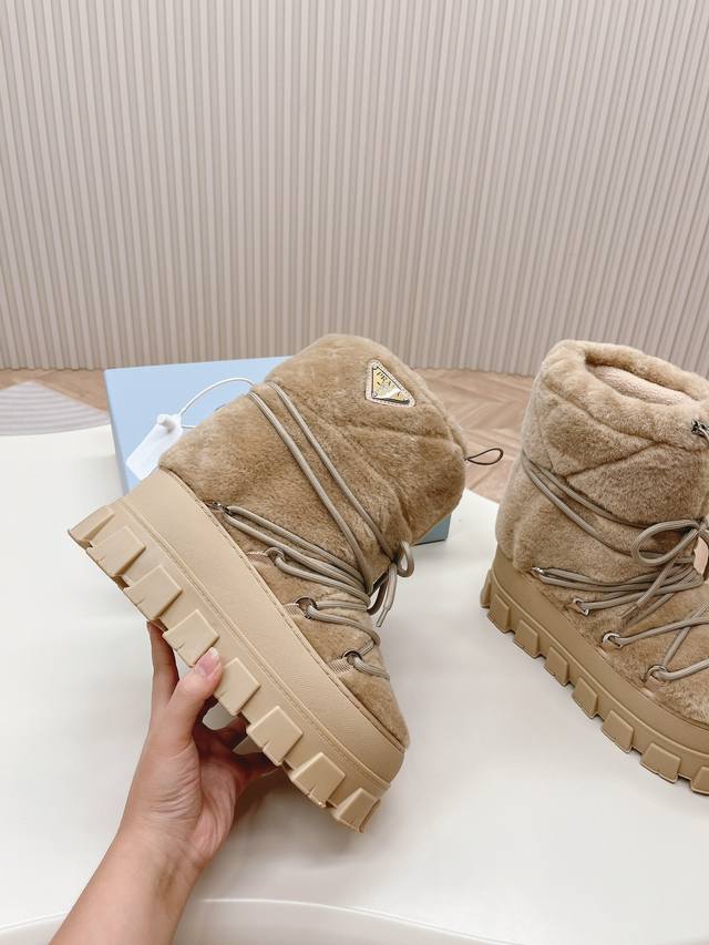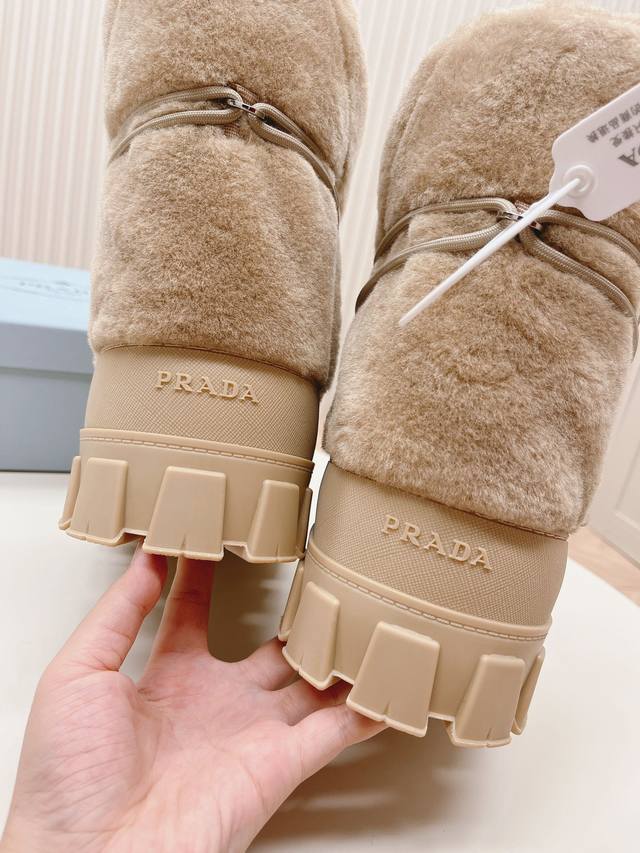 Factory Price (pp): DDD Latest Prada Snow Boots DDD Enameled Triangular Metal Logo DDD Boot Shaft: 14cm DDD Thick Sole, 50mm DDD Embossed 1:1 Original Outsole DDD Notched Edge DDD Colors: 4 DDD Sizes: 35-42 41.42 Custom Made DDD