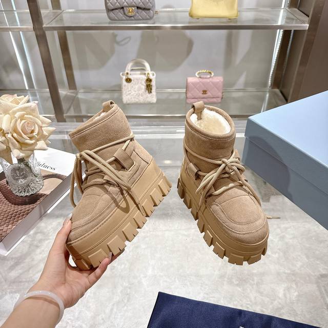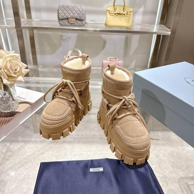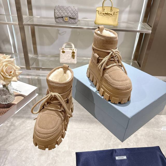Factory Price (pp): DDD Latest Prada Snow Boots DDD Enameled Triangular Metal Logo DDD Boot Shaft: 14cm DDD Thick Sole, 50mm DDD Embossed 1:1 Original Outsole DDD Notched Edge DDD Colors: 4 DDD Sizes: 35-42 41.42 Custom Made DDD