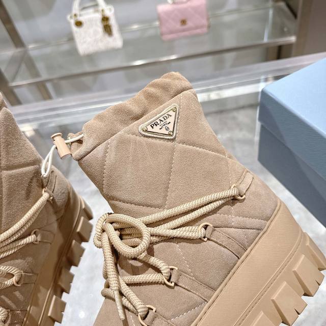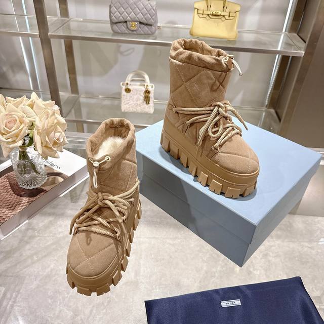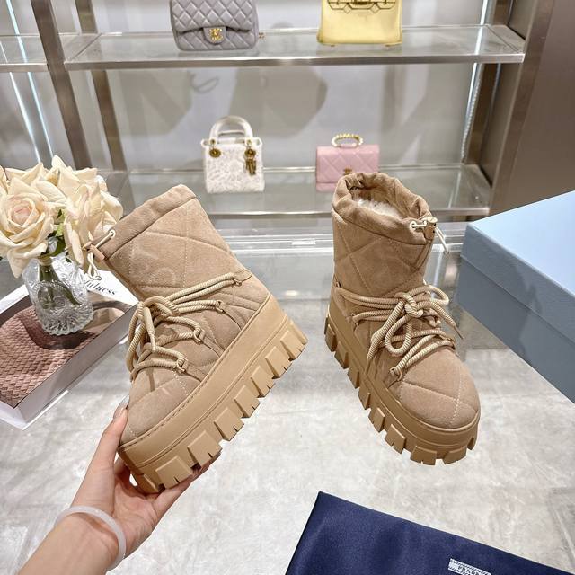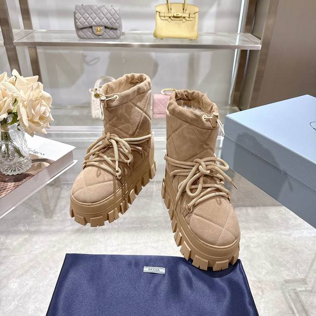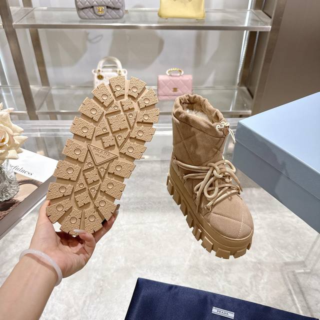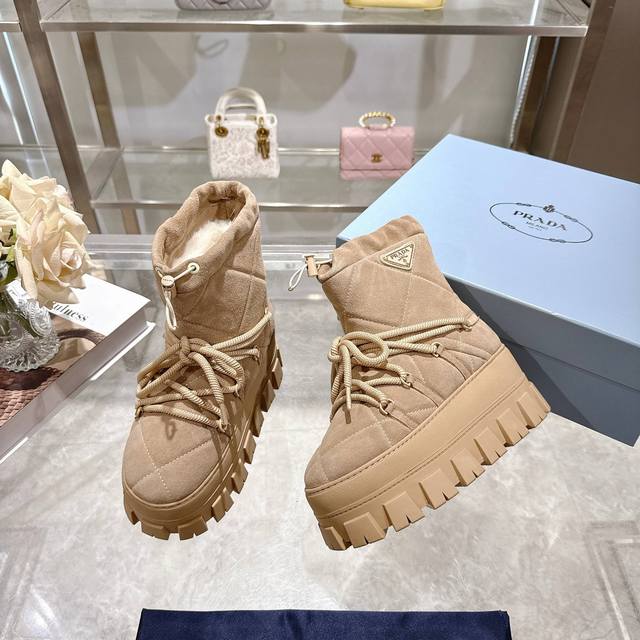 Factory Price (pp): DDD Latest Prada Snow Boots DDD Enameled Triangular Metal Logo DDD Boot Shaft: 14cm DDD Thick Sole, 50mm DDD Embossed 1:1 Original Outsole DDD Notched Edge DDD Colors: 4 DDD Sizes: 35-42 41.42 Custom Made DDD