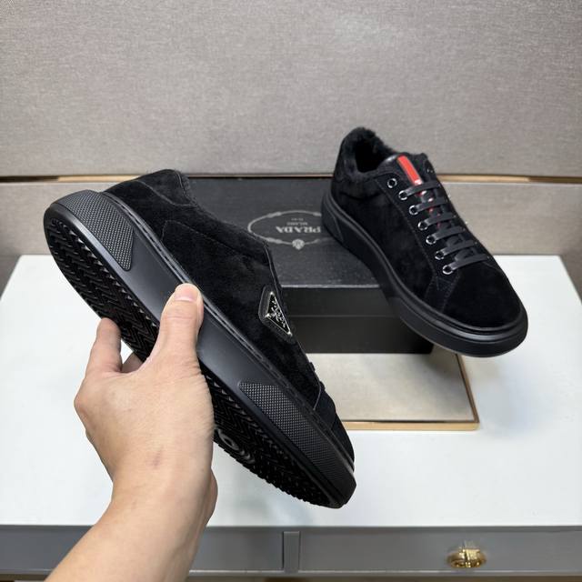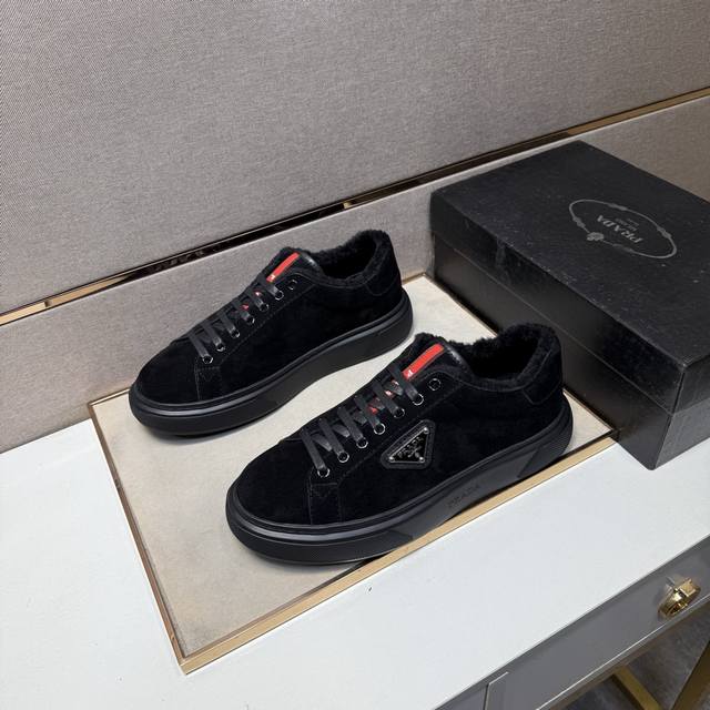 Factory Price (pp) Prada Men's Casual Shoes 2025Z (Retail Price Available) Sizes: 38-44 # Available in 4 colors. The upper features a multi-material patchwork fleece lining for comfort and breathability. Outsole: Original comfortable and durable sole. Actual product photos are even better! (DDD)