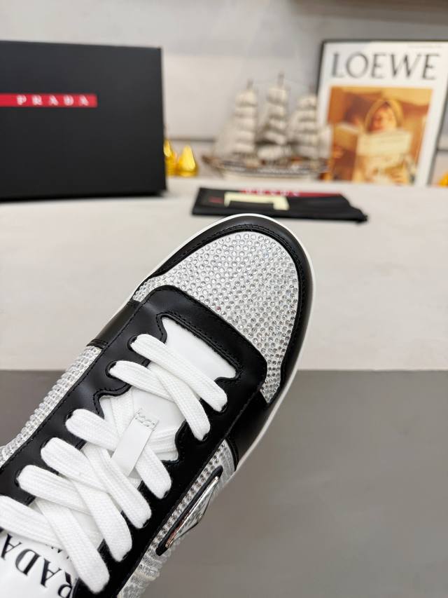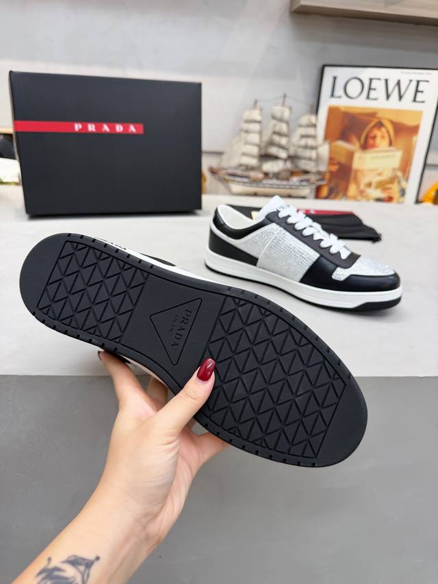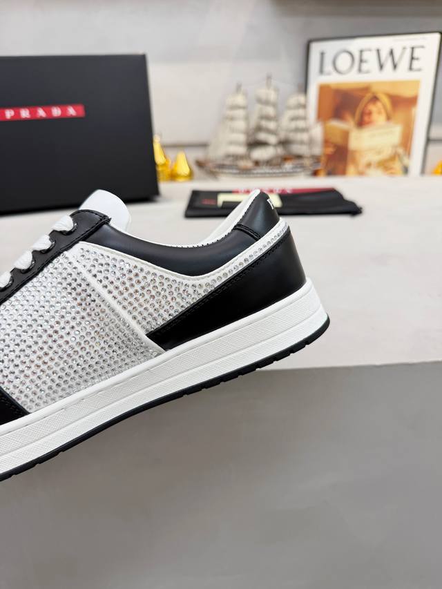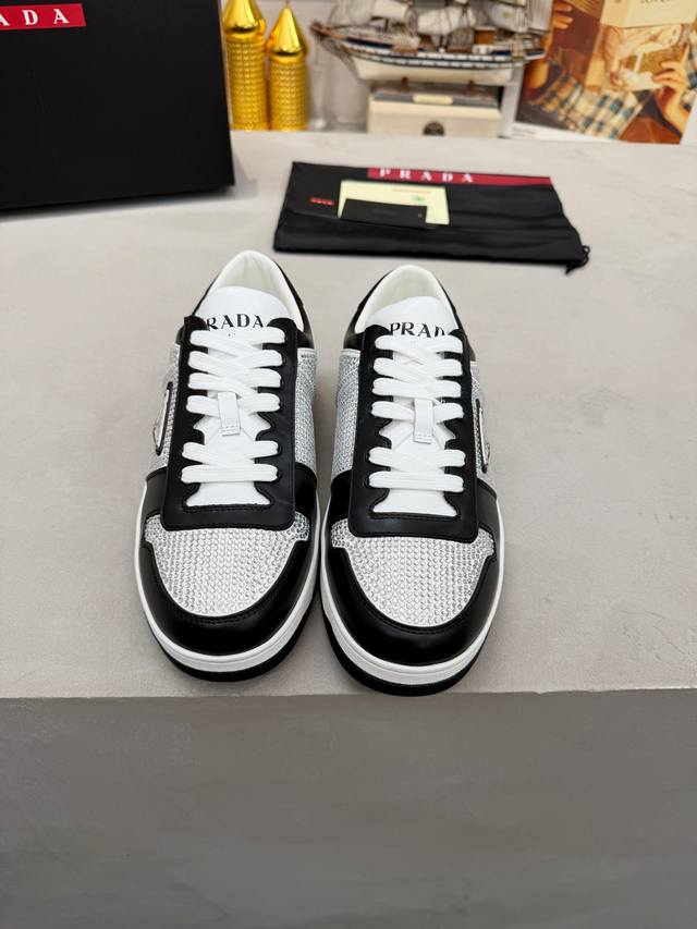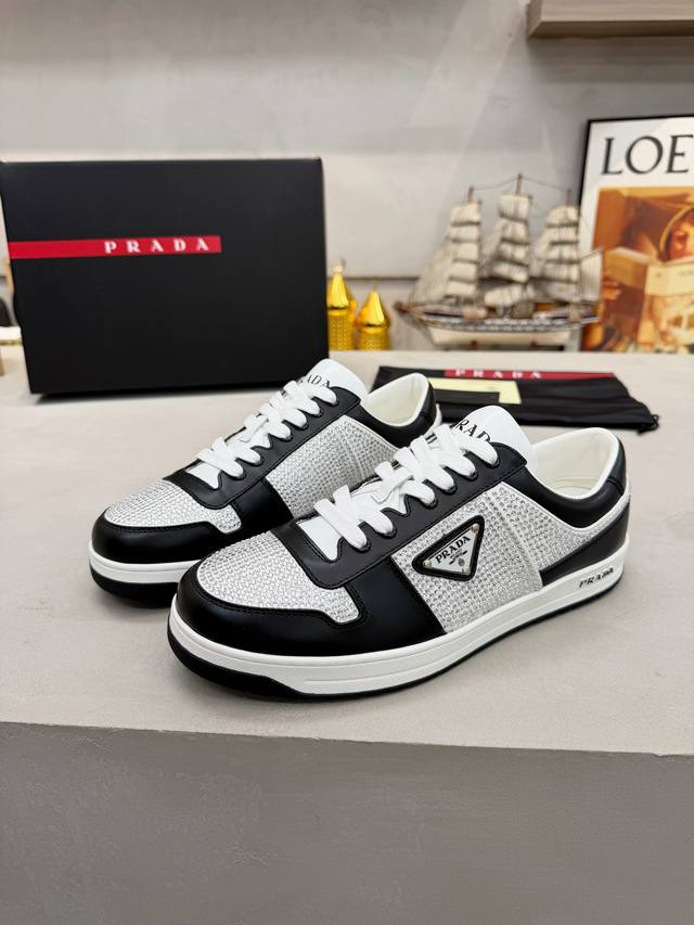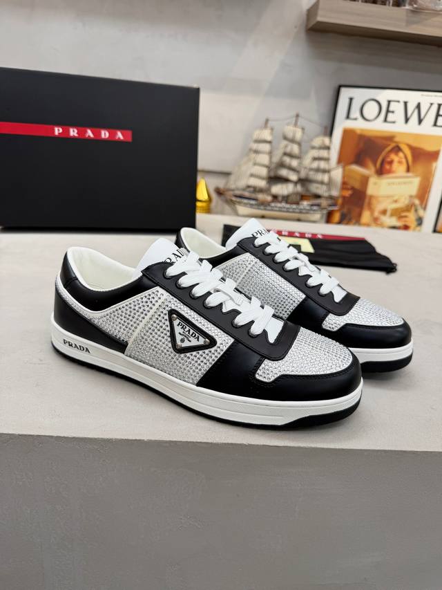 Factory Price (pp): DDD Prada men's shoes, best-selling item in department stores, DDD same as official website, high-quality shipment DDD Material: Original. Imported cowhide + rhinestone embellishment DDD Lining: Cowhide insole + cowhide lining DDD Outsole: Original rubber outsole DDD Sizes: 38-45. Size 45 is custom-made DDD