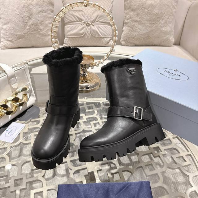 Factory Price (pp): Prada: New Style Ankle Boots Upper: Imported full-grain cowhide, high-gloss suede Lining: Imported wool lining Insole: Imported wool Sole: Original craftsmanship, 6cm thick outsole Sizes: 35-42, 41.42 custom-made