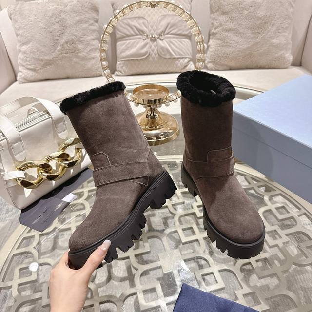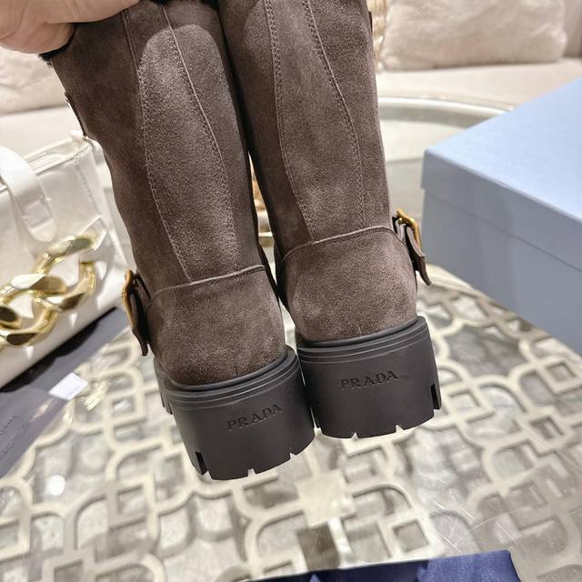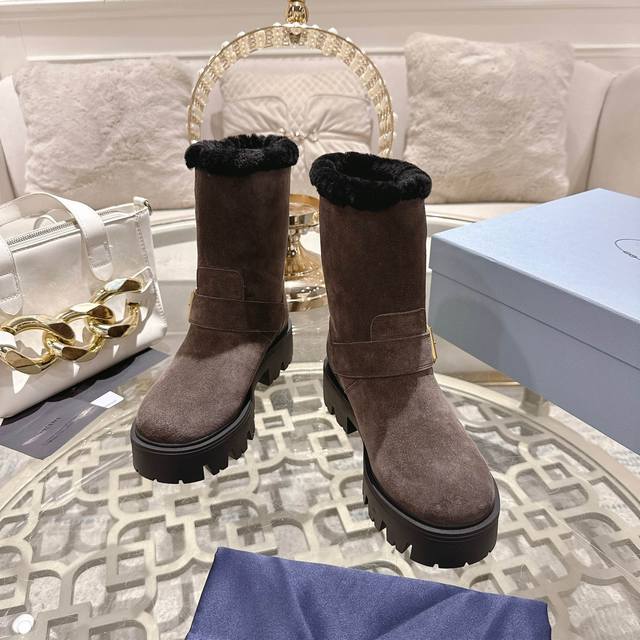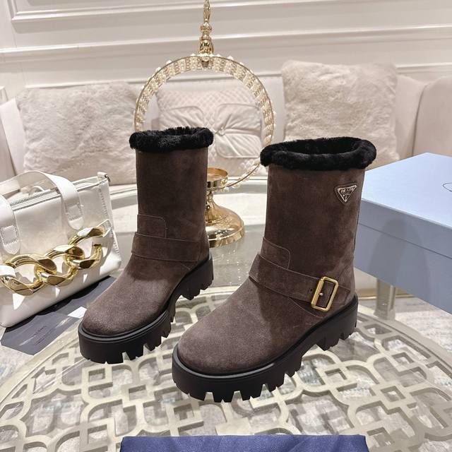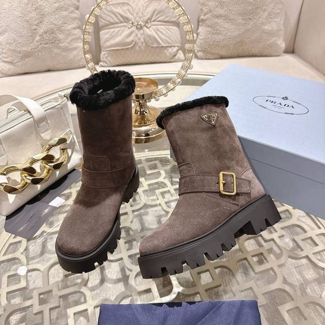 Factory Price (pp): Prada: New Style Ankle Boots Upper: Imported full-grain cowhide, high-gloss suede Lining: Imported wool lining Insole: Imported wool Sole: Original craftsmanship, 6cm thick outsole Sizes: 35-42, 41.42 custom-made