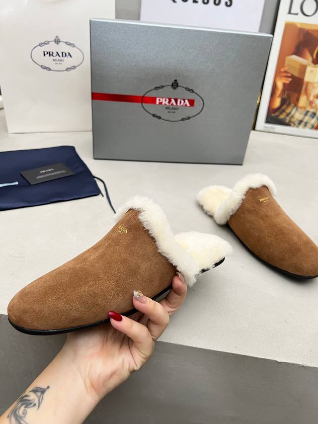 Factory Price (pp): DDD Prada: Winter Thick-Soled Wool Shoes Fashion Runway Style, DDD Outsole: Original PU Outsole, DDD Upper: High-Gloss Cow Suede, DDD Lining: Genuine Wool, DDD Insole: Genuine Wool, DDD Sizes: 35-40, DDD