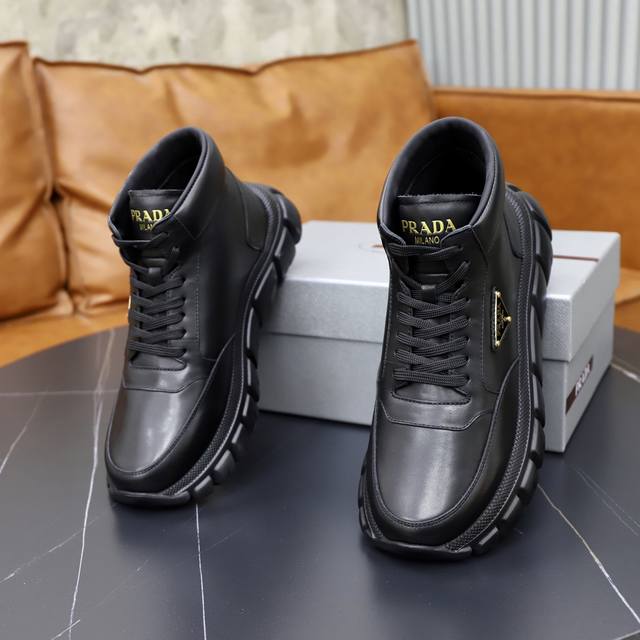 Factory Price (pp): Top-tier Prada craftsmanship, same as Prada boutiques, high-top boots with original Italian imported cowhide stitching, imported cowhide lining, breathable and comfortable, sole: original factory-supplied sole, original factory order, high quality, welcome to compare, sizes 38-44, custom orders 45, 46 DDD