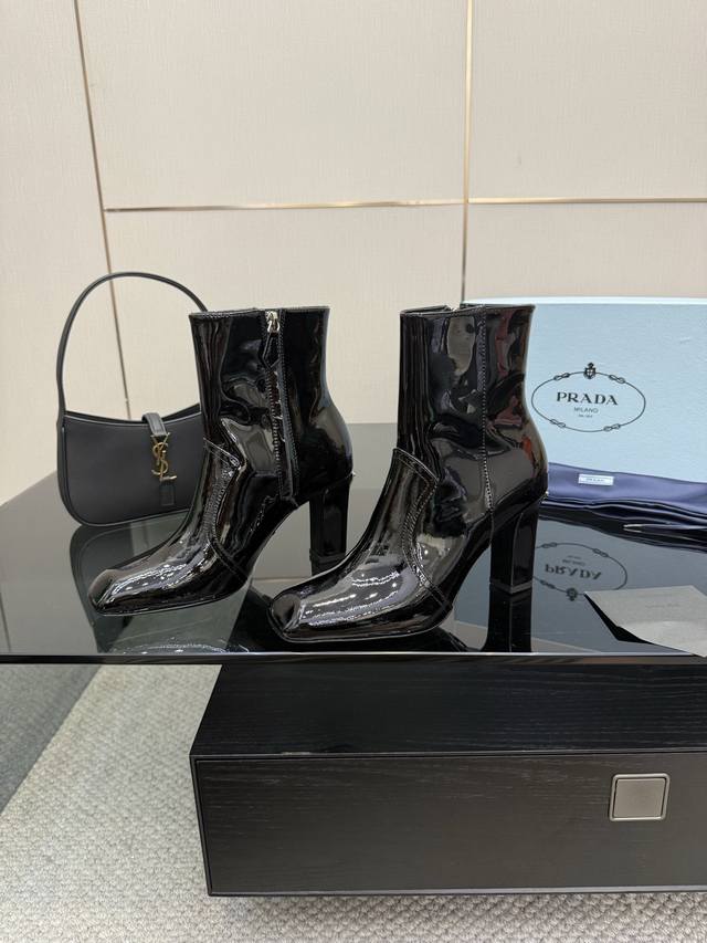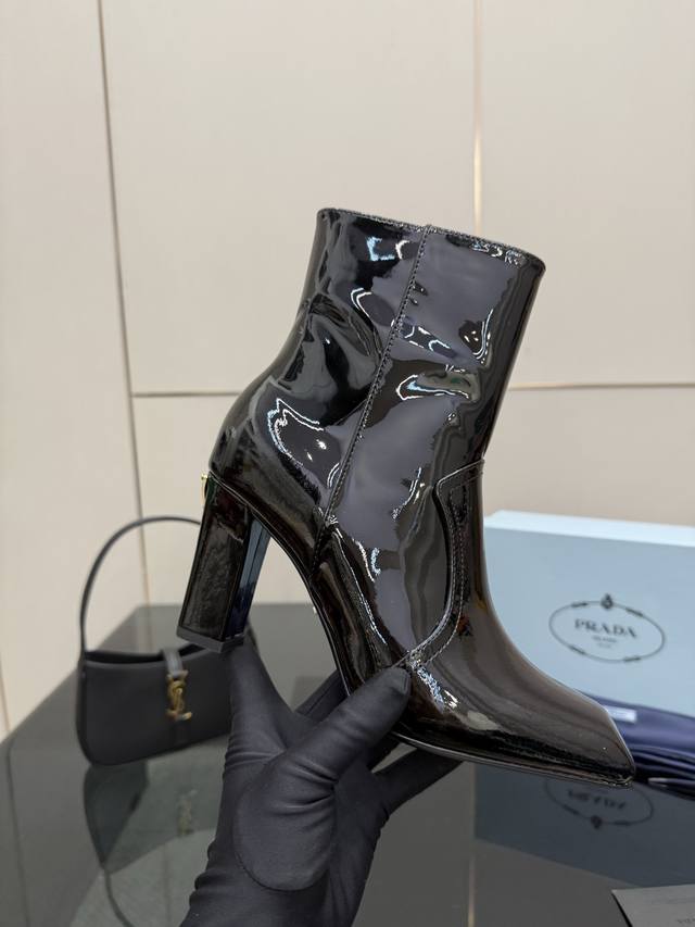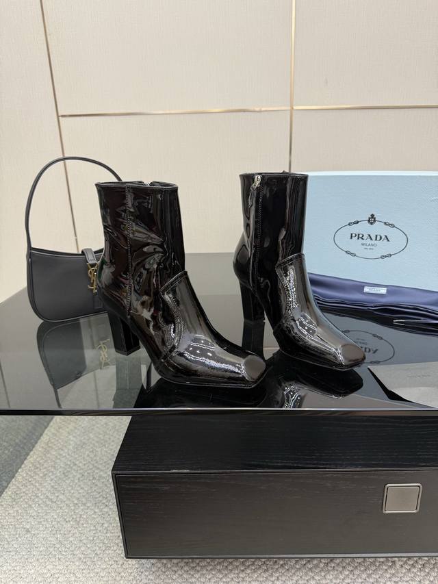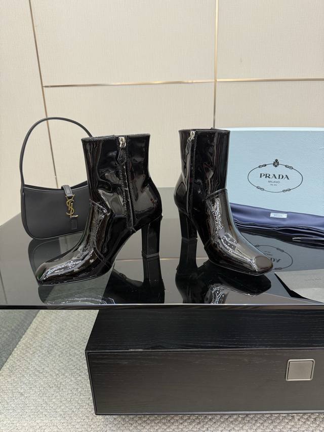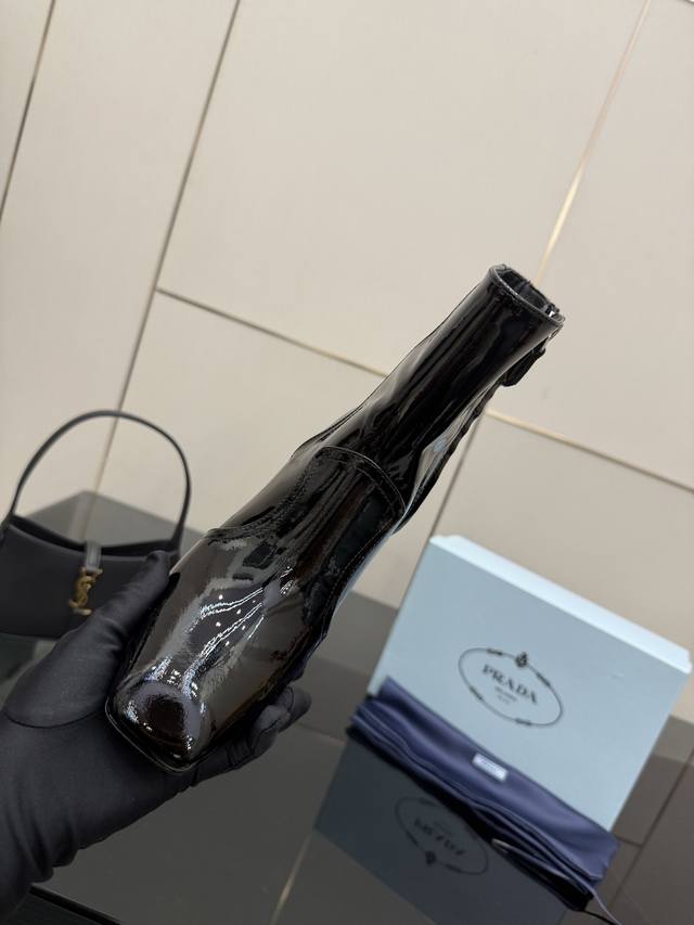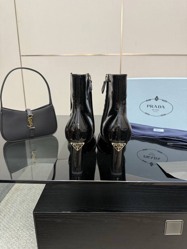 Factory Price Prada 25Wf Autumn/Winter New Arrival Triangle Logo Chelsea High-Heeled Ankle Boots! I've found the same boots worn by female protagonists in CEO novels! These ankle boots truly give anyone a powerful, leading lady aura. The iconic triangle logo makes them instantly recognizable. The elastic fabric on the sides not only makes them easy to put on and take off but also adds a touch of dynamism to the overall minimalist design. The chunky heel design makes walking more sleek, providing a stable and confident look. The height is just right, and they won't tire your feet even after long walks. Pair them with jeans for an instant fashionista look, or with suit pants for a sharp and professional appearance. Whether you're shopping or attending an important occasion, wearing these boots will make you confident and easily capture everyone's attention. They truly are an indispensable "ace item" in your shoe collection.
