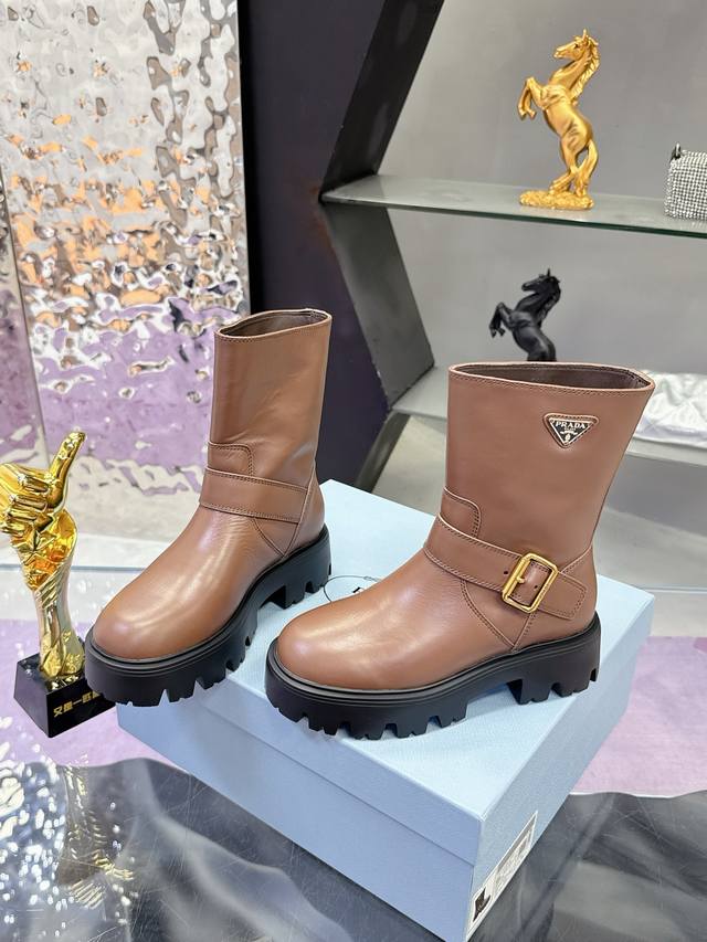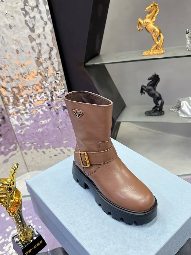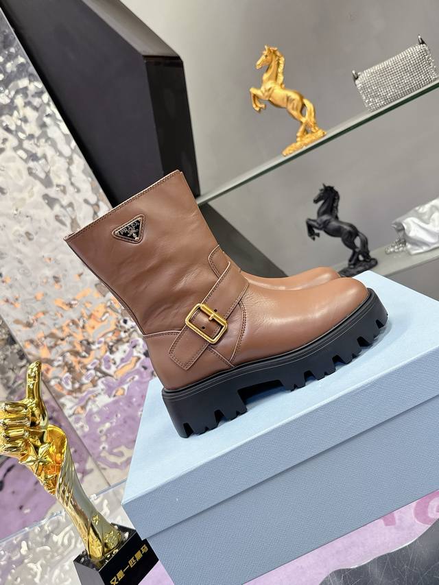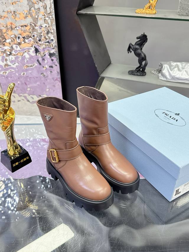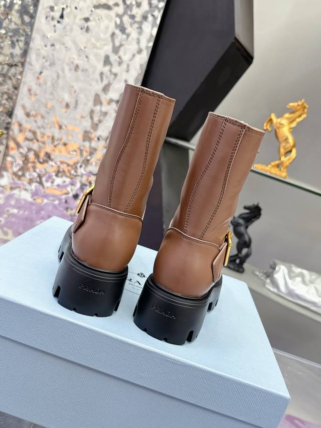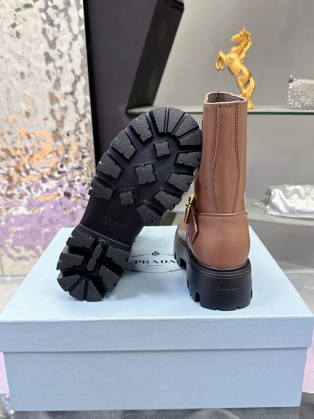 Factory Price: Prada Classic Triangle Logo Slip-on Women's Ankle Boots - A must-have for winter, this is definitely a hot item this year!! Super stylish! Prada boots are truly amazing! They look sophisticated and make your legs appear slimmer, perfectly capturing a chic and elegant look. The entire series uses various imported materials: imported high-gloss cowhide, cowhide, silk cowhide lining, rubber foam sole for lightweight comfort! Sizes: 35-40, 41. Custom orders are non-refundable and non-exchangeable.