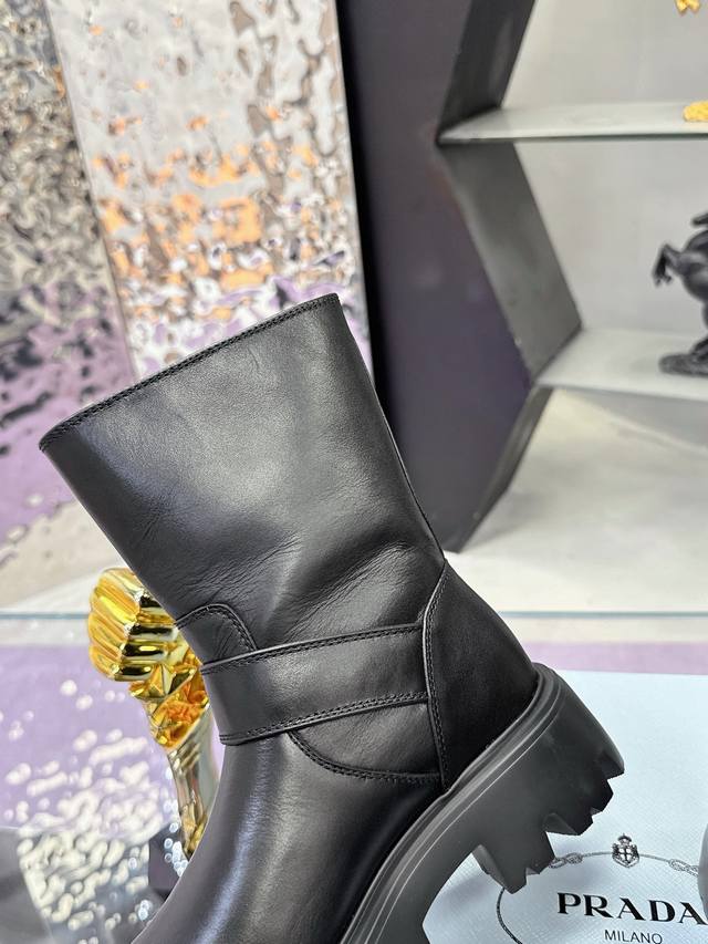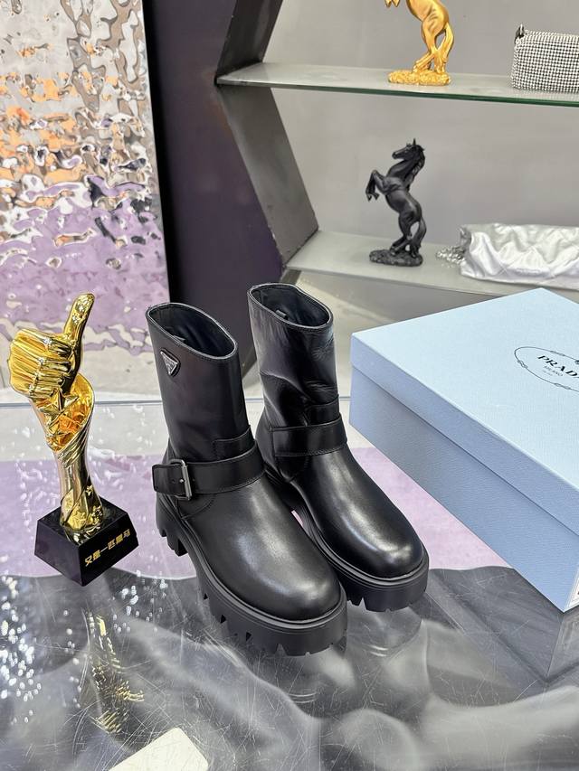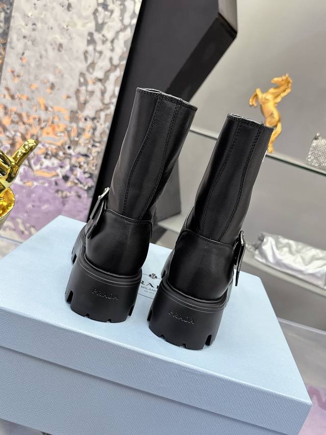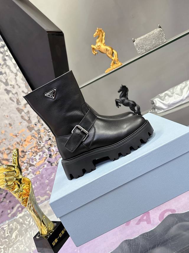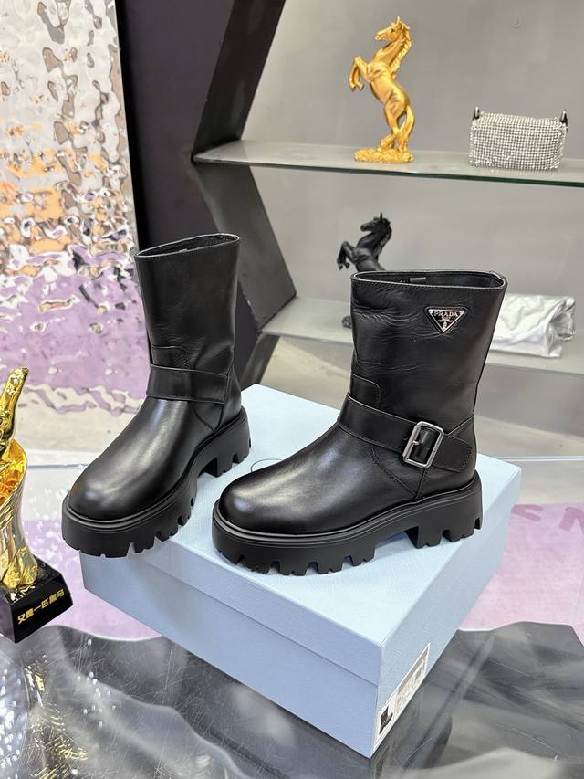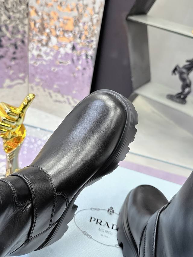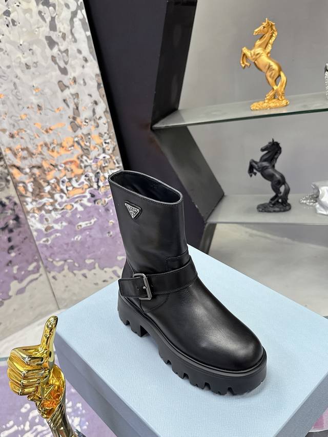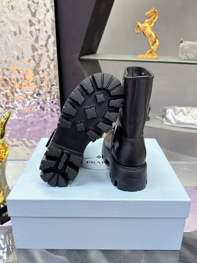 Factory Price: Prada Classic Triangle Logo Slip-on Women's Ankle Boots - A must-have for winter, this is definitely a hot item this year!! Super stylish! Prada boots are truly amazing! They look sophisticated and make your legs appear slimmer, perfectly capturing a chic and elegant look. The entire series uses various imported materials: imported high-gloss cowhide, cowhide, silk cowhide lining, rubber foam sole for lightweight comfort! Sizes: 35-40, 41. Custom orders are non-refundable and non-exchangeable.