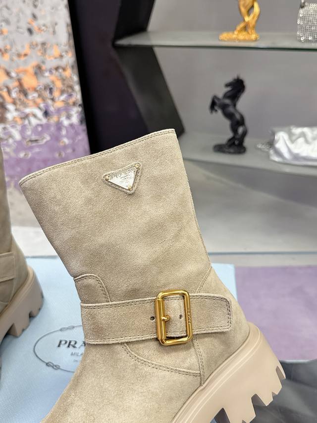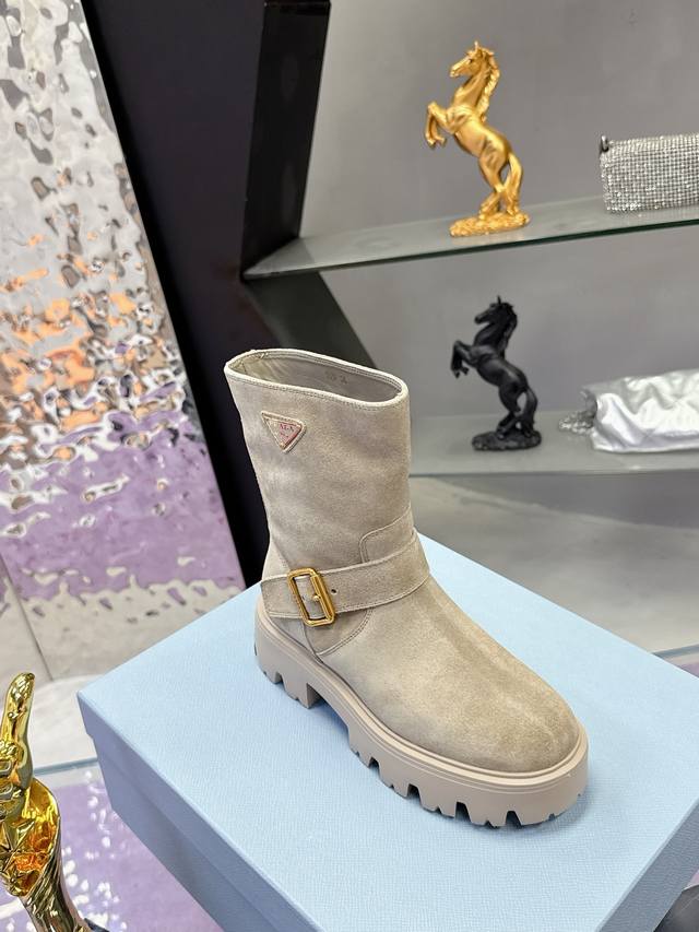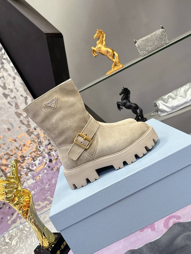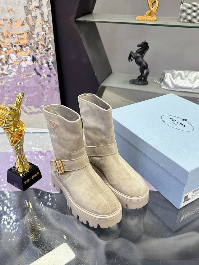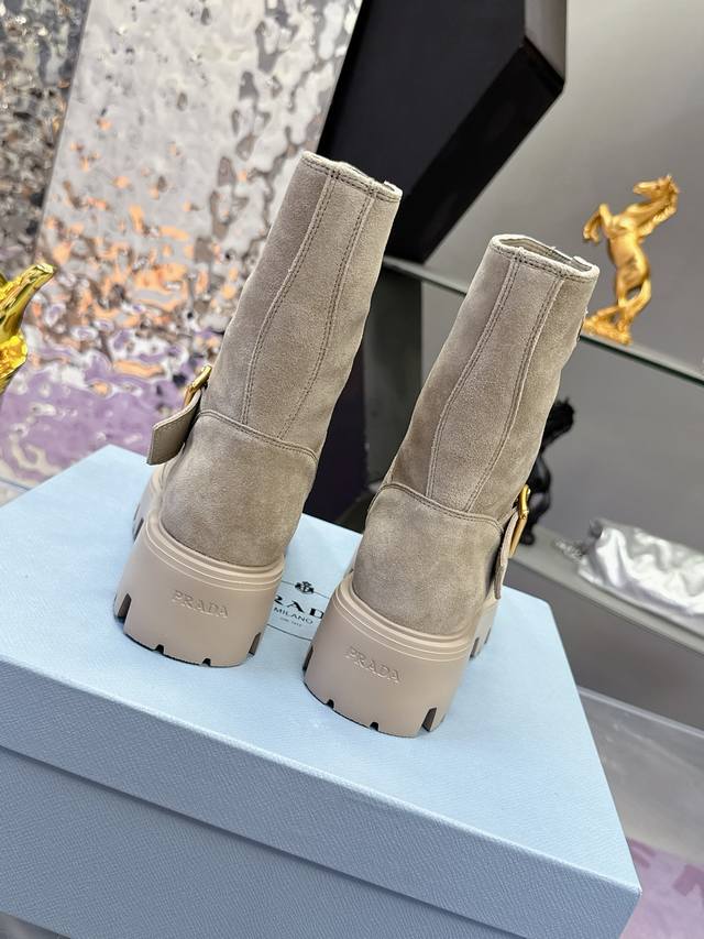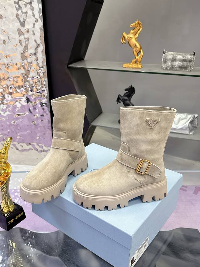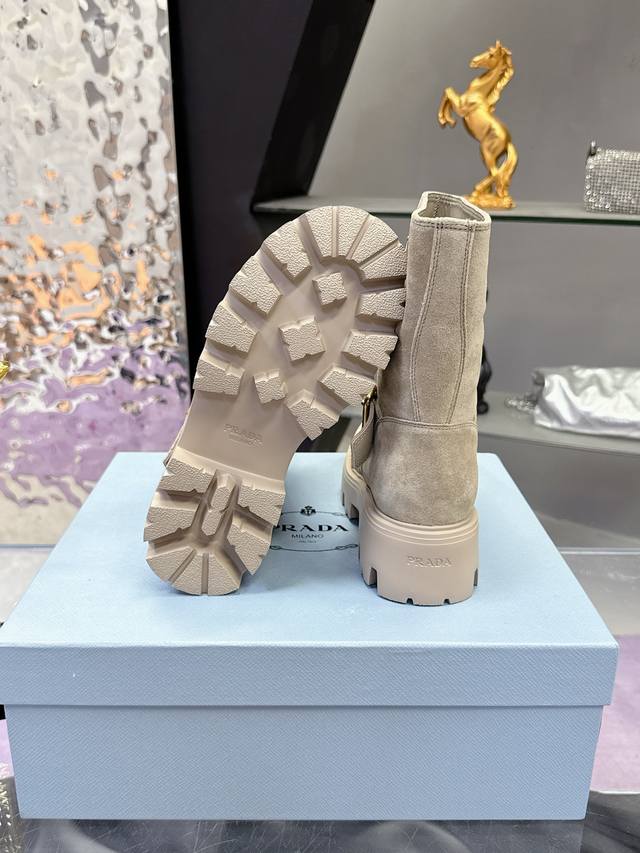 Factory Price: Prada Classic Triangle Logo Slip-on Women's Ankle Boots - A must-have for winter, this is definitely a hot item this year!! Super stylish! Prada boots are truly amazing! They look sophisticated and make your legs appear slimmer, perfectly capturing a chic and elegant look. The entire series uses various imported materials: imported high-gloss cowhide, cowhide, silk cowhide lining, rubber foam sole for lightweight comfort! Sizes: 35-40, 41. Custom orders are non-refundable and non-exchangeable.