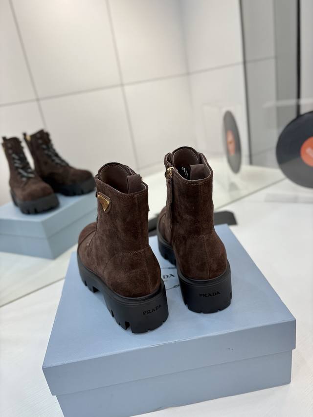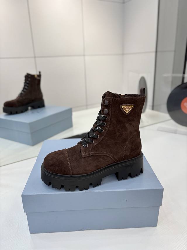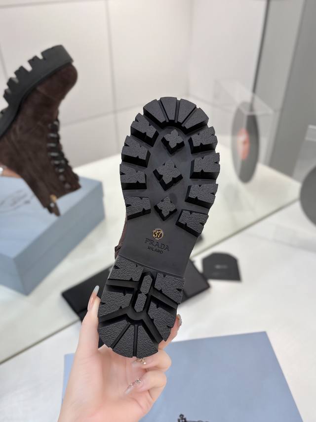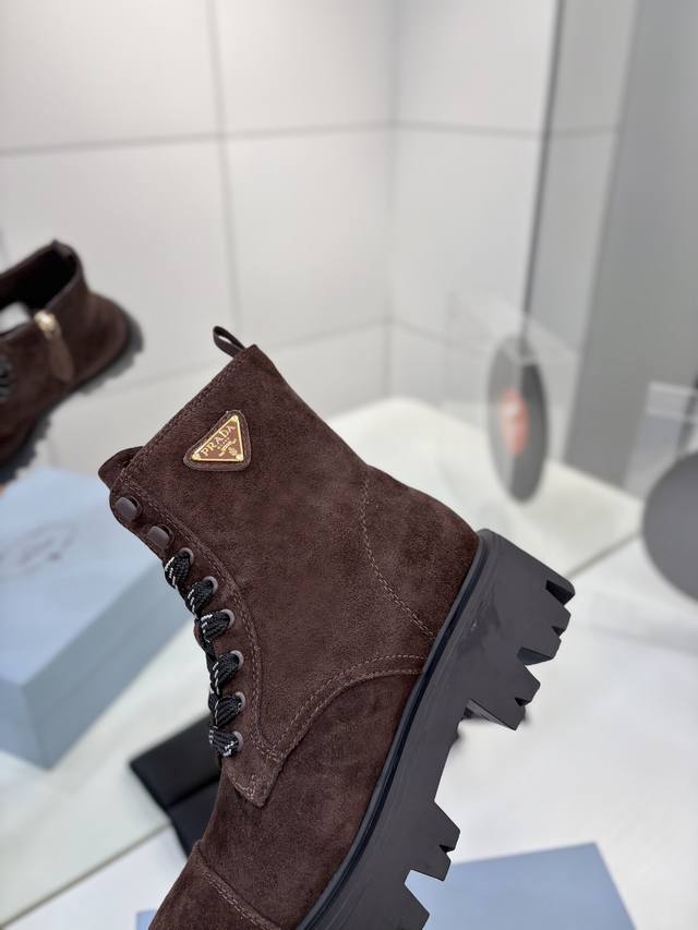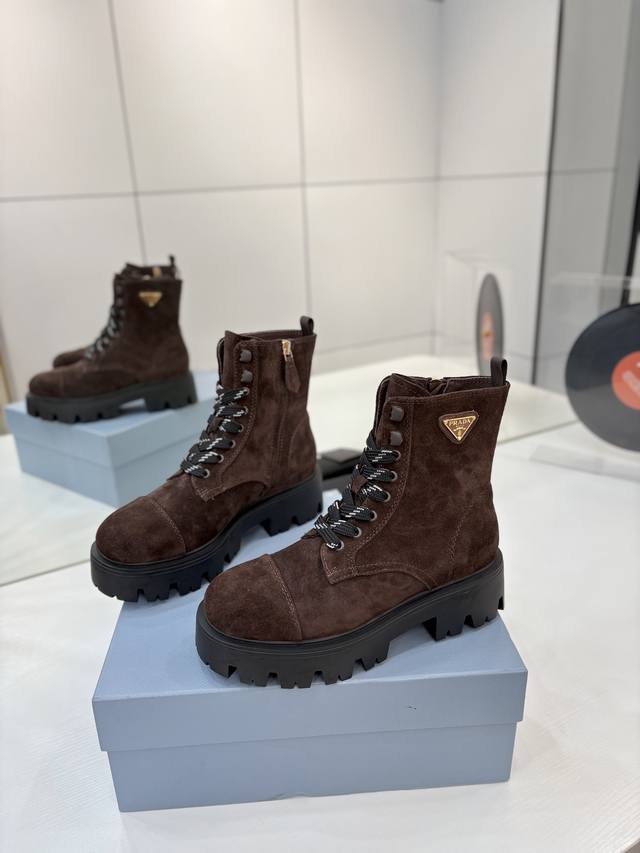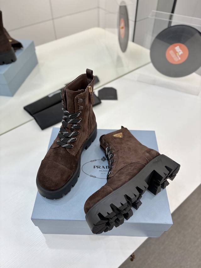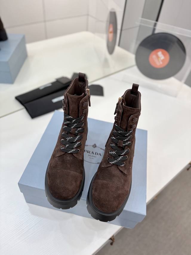 Factory price Prada Martin boots, DDD khaki grey suede Martin boots, lace-up design with black and white checkered laces, everyone loves them and they're easy to wear!! A hit every year . Also, the versatile and classic last is enough to win you over. Wearing them, you can both add height and be casual, simple and stylish on your feet. DDD Material: Imported split-edge calfskin high-gloss suede DDD Lining: Super soft cowhide lining DDD Outsole: TPU outsole DDD Sizes 35-42 40.41 Custom orders are non-refundable and non-exchangeable DDD