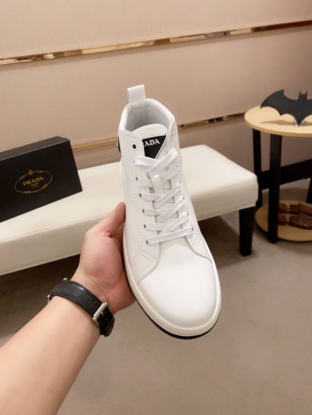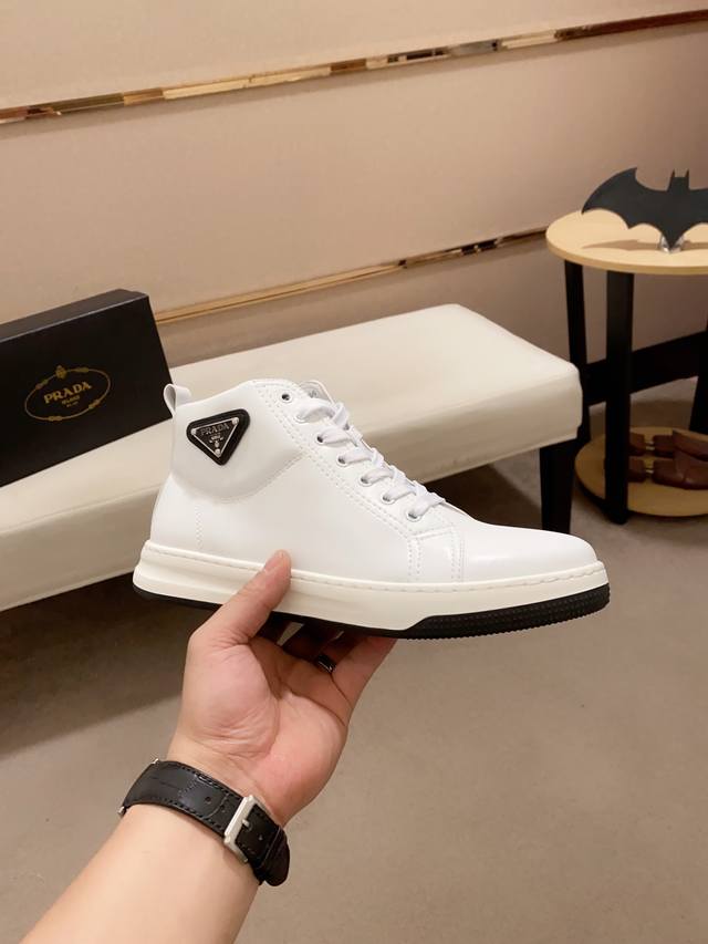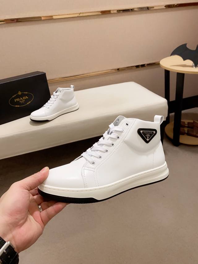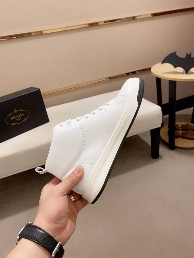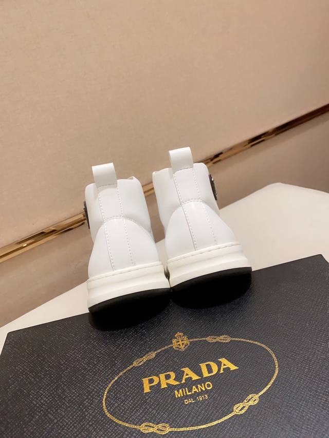 Factory price Prada ~ Prada trendy high-top new arrival, same style as official website, boutique quality, original version, made with selected top-grain calfskin leather. Comfortable and breathable sheepskin lining, exquisite workmanship, 100% pure cowhide upper layer, original last, comfortable to wear, sizes 38 to 44.