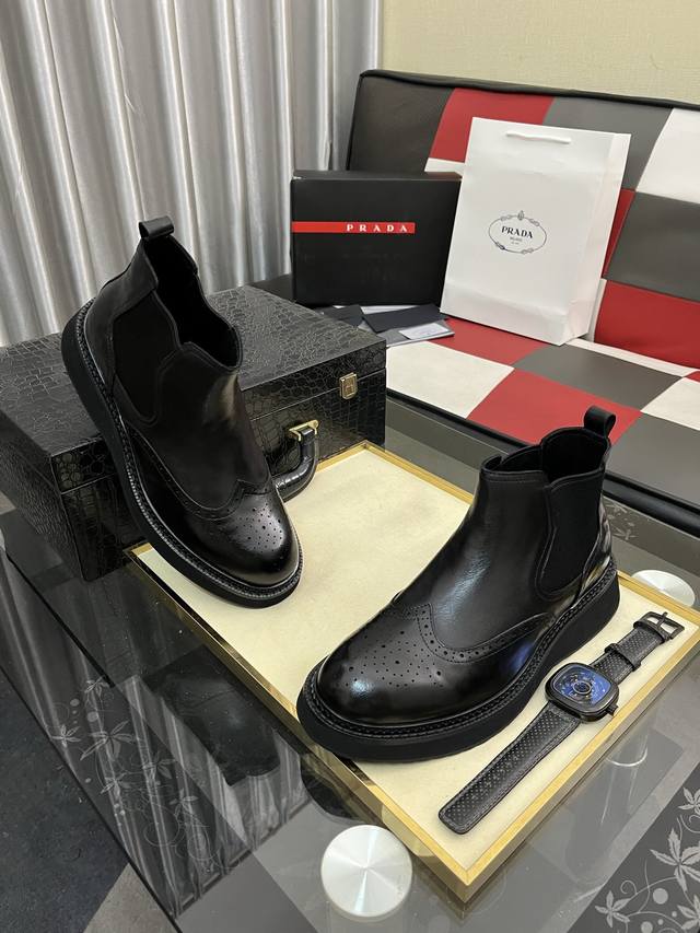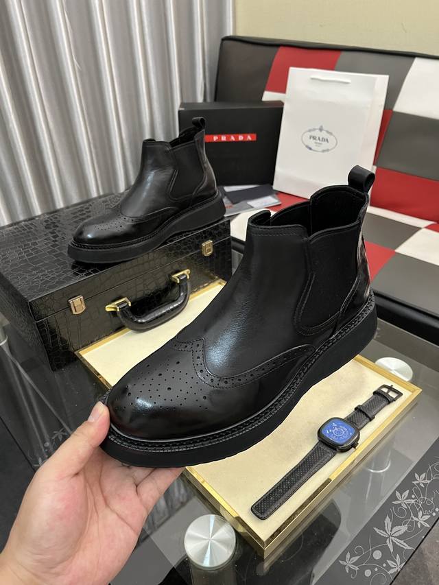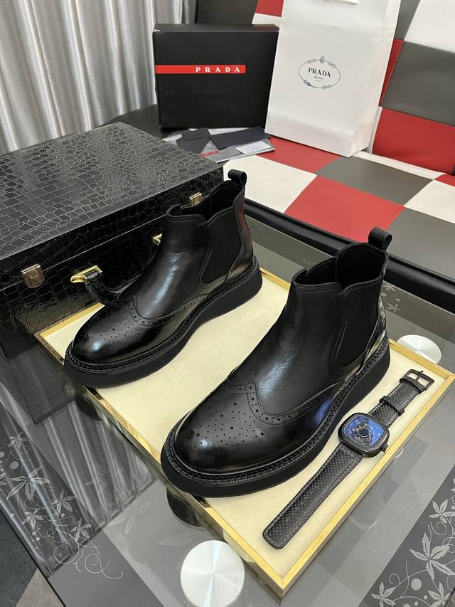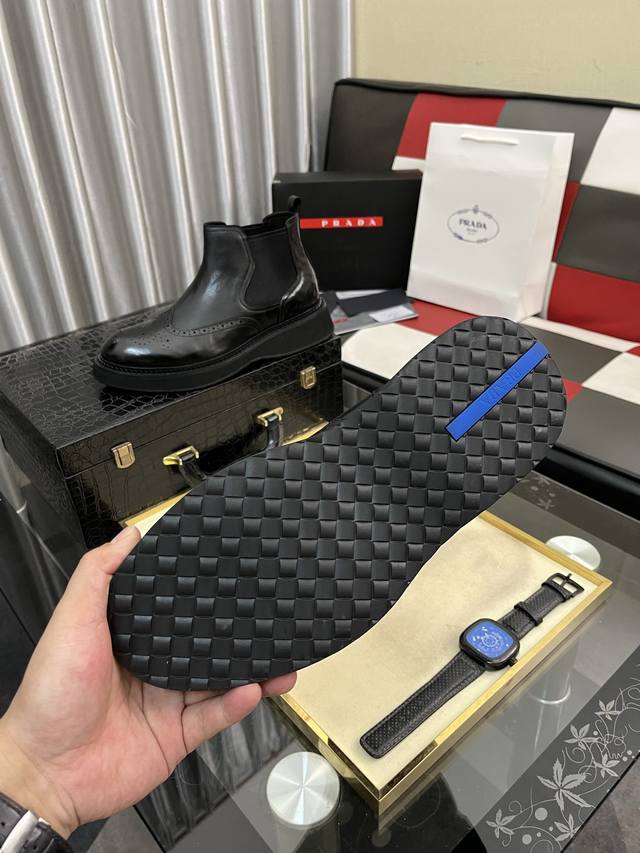 Factory Price: Prada Top Version High-Top New Casual Leather Shoes, Original Purchase and Development. Prada Men's Classic Series, Technological Breathable Fabric with Cowhide Leather, Casual Sports Shoes, Casual Dad Shoes. Combining high-tech breathable materials and cowhide leather, these shoes feature exclusive Prada button decorations on the sides, a full Prada italic design, and vibrant colors to showcase vitality, continuing the brand's design inspiration. Enjoy a light and comfortable stroll in the city. Beautiful Packaging Included. Material: Original Custom Calfskin with Breathable Material. Lining: Cowhide Lining and Warm Fleece Lining, Cowhide Insole. Outsole: Open-Mold TPU Foam Material. Sole Thickness: 3.5cm. Size: Men's 38-45 .