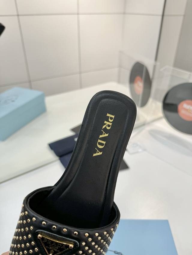 Prada's iconic triangle geometry inspires the heel design, highlighting the tapered shape and soft curves with a unique modern touch.