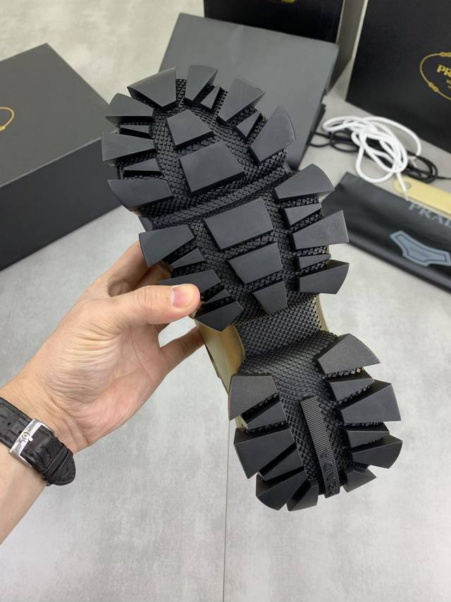 Factory Price Top-Tier Version 5D Printed Prada Dark Punk Martin Rock Tank Mecha Hardcore Battle Shoes Ddd. A century-old brand, Ddd's unique hardcore design has entered the public eye. Using tank elements as the sole design, it subverts conventions, breaks the monotony, brightens the overall look, and attracts attention, achieving a fearless posture. Ddd's hardcore design, enhanced by metal accessories, embodies an untamed punk spirit, interpreting a unique and iconic style. It demonstrates its pioneering leadership in the platform shoe field and is a darling of major fashion weeks. Ddd's ultra-lightweight foam outsole solves the problem of bulkiness; those who know their stuff can buy it without hesitation. Ddd original fabric splicing design and production. Ddd original inner lining cowhide insole. Ddd original foam combination outsole, 8cm heel height, super lightweight. Sizes: Women's 35-39, size 40 (made to order, no returns or exchanges); Men's 39-45, size 46, size 47 (made to order, no returns or exchanges). Comes with full department store packaging.