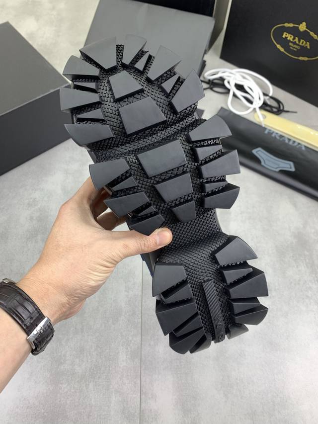 Factory price top-tier version Prada Dark Punk Martin Rock Tank Mecha Hardcore Berserker Shoes Ddd. A century-old brand, its unique hardcore design has entered the public eye. Using tank elements as the sole design, it subverts conventions, breaks the monotony, brightens the overall look, and attracts attention, achieving a fearless posture. Ddd's hardcore design, full of design sense and metal accessories, unleashes an unruly punk spirit, interpreting a unique and iconic style. It demonstrates its pioneering leadership in the platform shoe field and is a darling of major fashion weeks. Ddd's ultra-lightweight foam outsole solves the problem of bulkiness; those who know their stuff can buy it without hesitation. Ddd original fabric splicing design and production. Ddd original inner lining cowhide insole. Ddd original foam combination outsole, 8cm heel height, super lightweight. Sizes: Women's 35-39, size 40 (made to order, no returns or exchanges); Men's 39-45, size 46, size 47 (made to order, no returns or exchanges). Comes with full department store packaging.