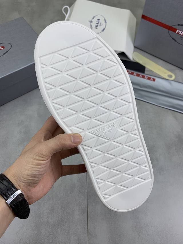 Factory-priced men's sports shoes, original, official website hits. This trendy Prada brand's flagship model features avant-garde, versatile, and stylish men's shoe, privately molded. The cowhide upper features a 1:1 stitching. Stylish and crisp, the shoe features an original imported cowhide lining and cowhide footbeds. This stylish, individual shoe is trendy, eye-catching, and sophisticated. It will revolutionize fashion and be a must-have for those who love fashion. These high-end, comfortable, and high-quality shoes are available in sizes 38-45.