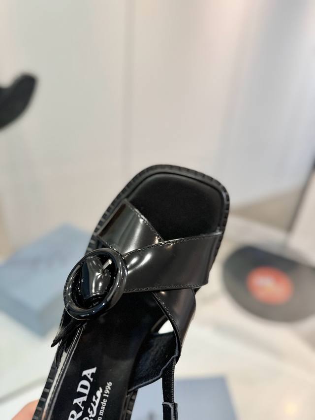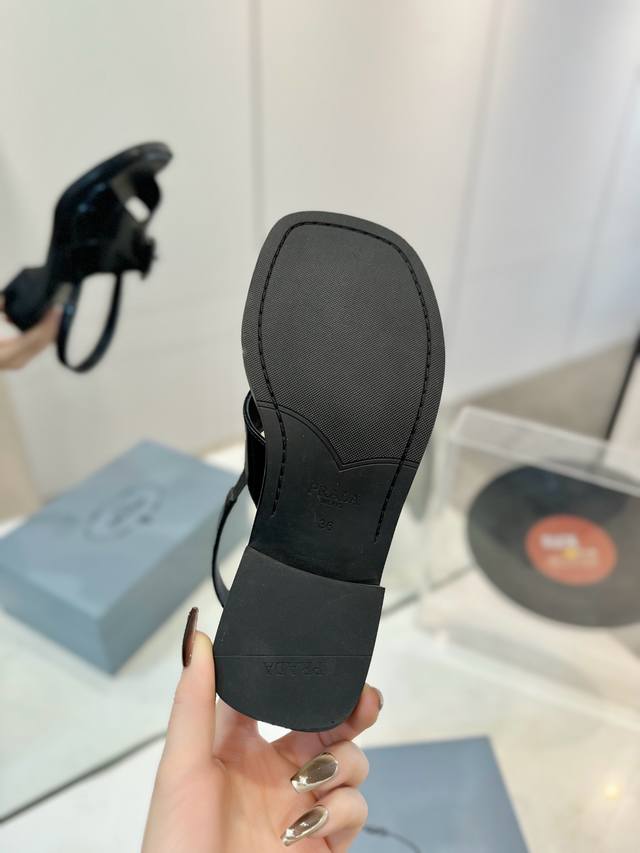 Factory-priced Prada slippers are incredibly popular this year. They're both stylish and stylish, and their clean, clean design demonstrates meticulous attention to detail. The upper features imported patent leather, while the lining is made of sheepskin. The leather edges are fully oiled, and the sole features an original molded rubber outsole. The heel height is 4.5cm, and the original mold is available. Sizes range from 35 to 40, and sizes 41 and 42 are custom-made and non-refundable.