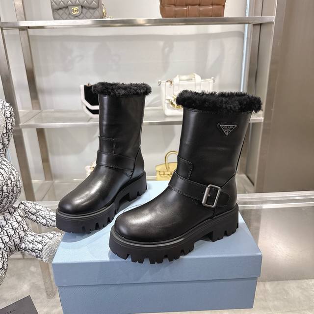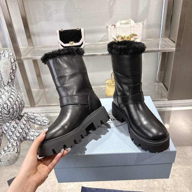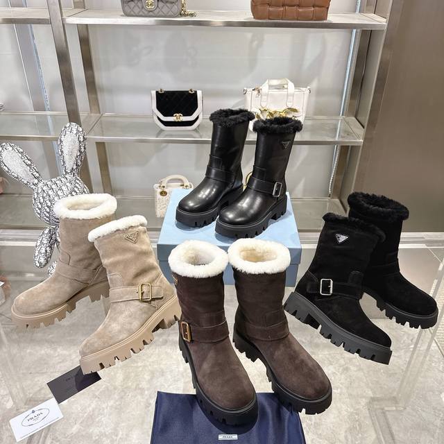 Heavyweight Prada Autumn/Winter Snow Boots, New Arrival, Thick-Soled, Non-Slip, Warm Wool Ankle Boots, DDD Prada Autumn/Winter Runway/Celebrity Style, DDD Original 1:1 Replica, Premium Quality! Top-Tier Version DDD Comfortable, Height-Boosting, Slimming, Elegant and Sophisticated! DDD A rare find combining comfort, warmth, and casual style! DDD Outer Material: High-Gloss Cow Suede Top Layer Cowhide DDD Lining: 100% Pure Wool Imported from Australia DDD Insole: 100% Pure Wool Imported from Australia DDD Outsole: Original TPU Foam Sole DDD Four Colors, Women's Sizes: 36