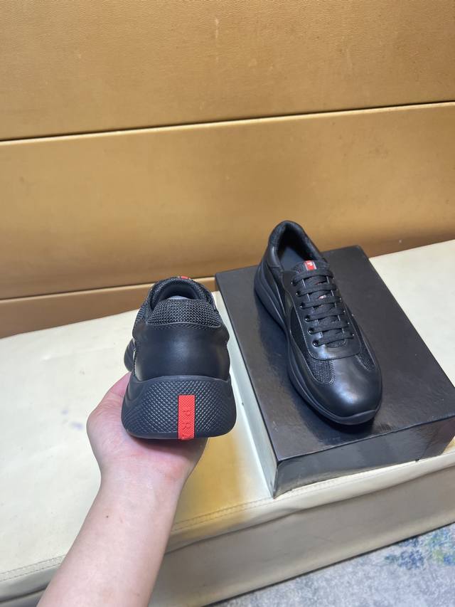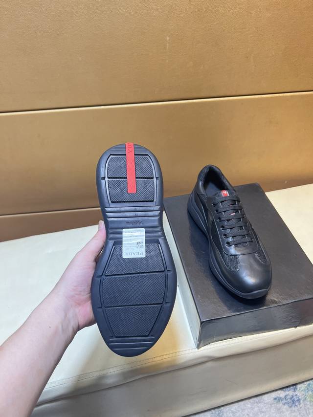 High-quality Prada men's shoes, the latest style from the official Hong Kong import website, are now available! 1:1 replicas, synchronized with Hong Kong boutiques, and featured on the same runway. All shoes are made with imported breathable silk calfskin upper with a cowhide lining and a genuine air-cushioned outsole, 1:1 original for slip resistance and durability. Comfortable to wear, stylish, and exquisitely crafted, with a simple and clean last, showcasing a man's boldness and strength. Sizes 38-448, colors available.