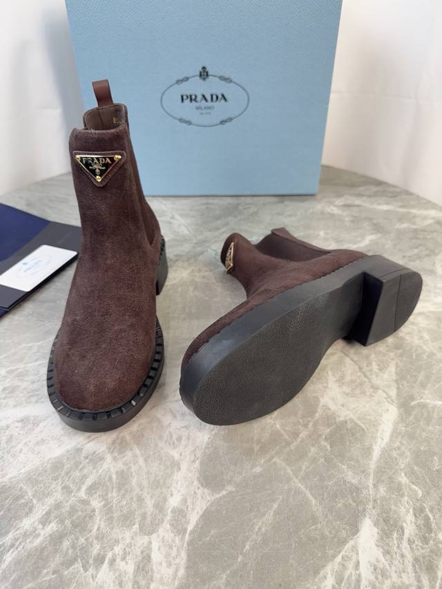 Latest model from Pixnet. Upper: Full-grain cowhide, high-gloss suede. Lining: Wool lining. Insole: Wool insoles. Sole: Original TPU outsole. Features the iconic triangle logo and original packaging. Size: 35-45.