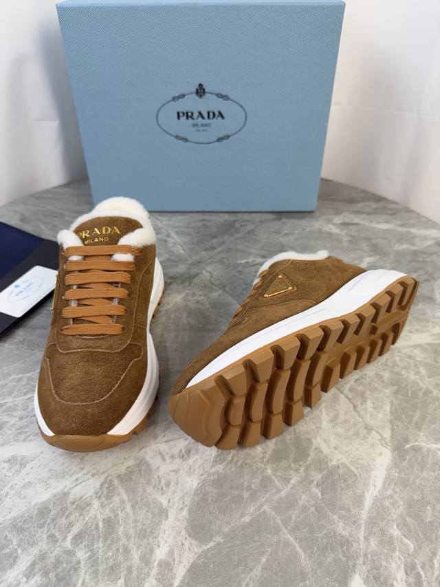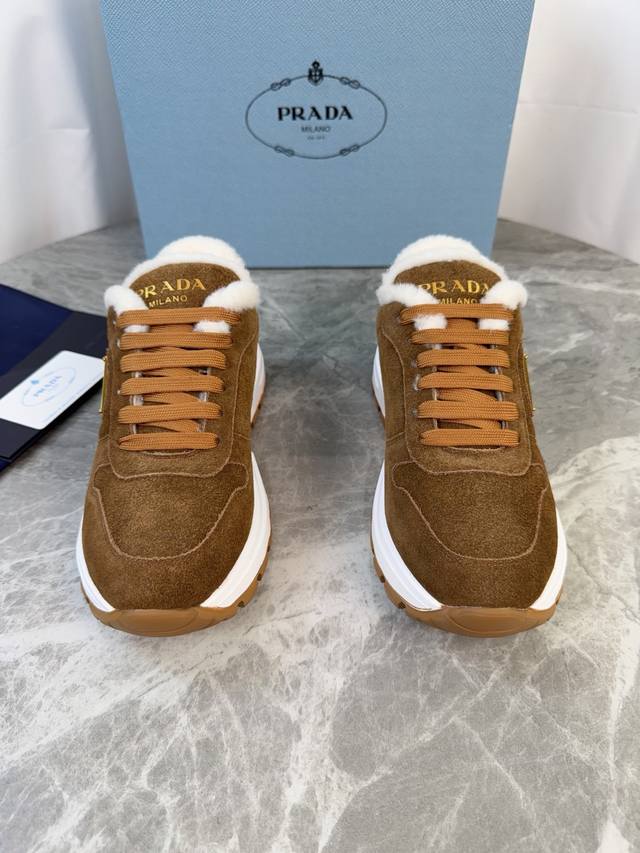 Latest model from Pixnet. Upper: Full-grain cowhide, high-gloss suede. Lining: Wool lining. Insole: Wool insoles. Sole: Original TPU outsole. Features the iconic triangle logo and original packaging. Size: 35-45.