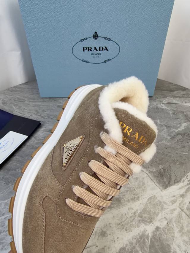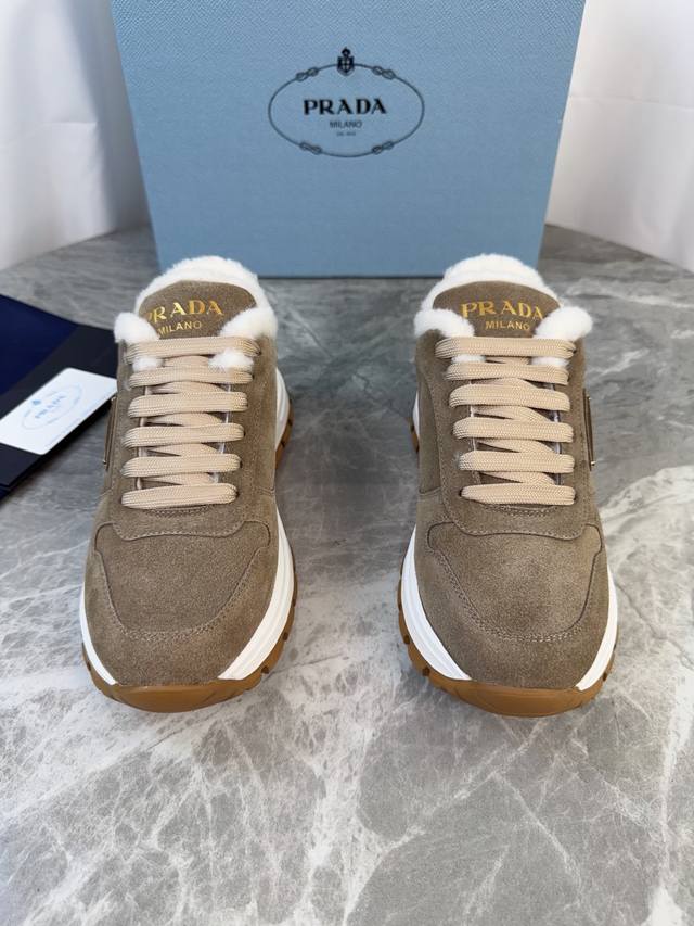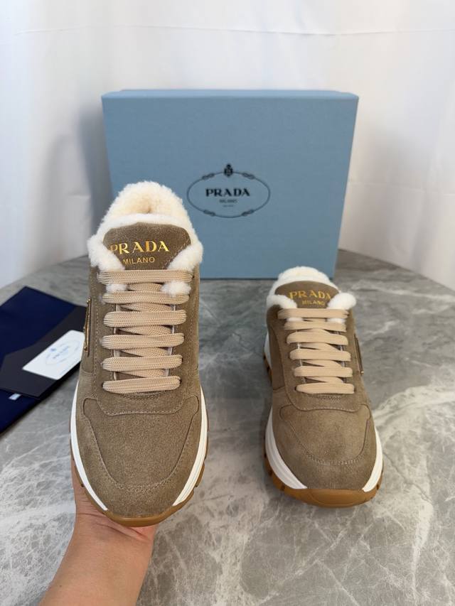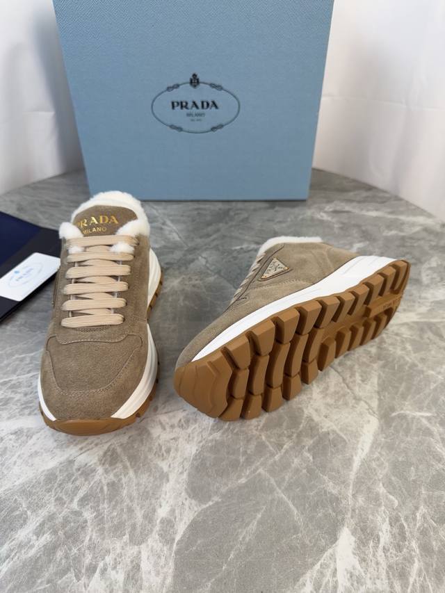 Latest model from Pixnet. Upper: Full-grain cowhide, high-gloss suede. Lining: Wool lining. Insole: Wool insoles. Sole: Original TPU outsole. Features the iconic triangle logo and original packaging. Size: 35-45.